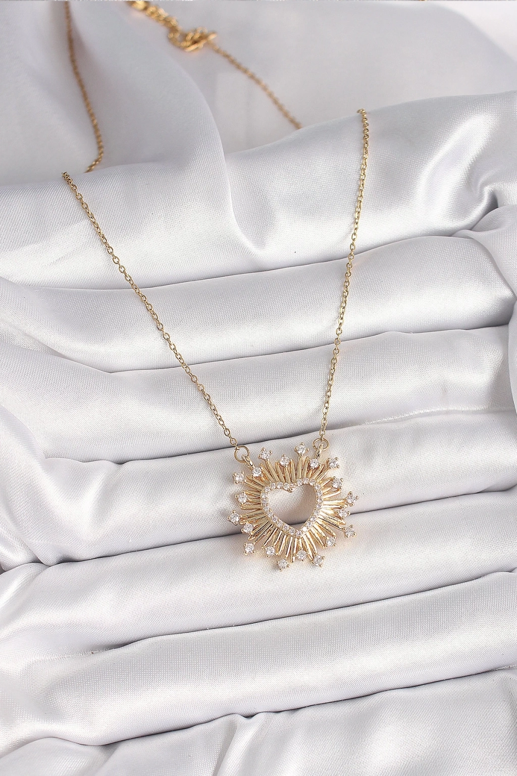 BFS 316L Çelik Gold Renk Zirkon Taşlı Kalp Model Kadın Kolye