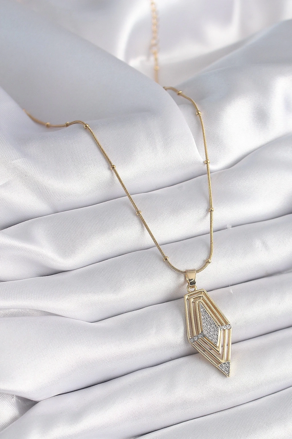 BFS 316L Çelik Gold Renk Zirkon Taşlı Vintage Model Kadın Kolye