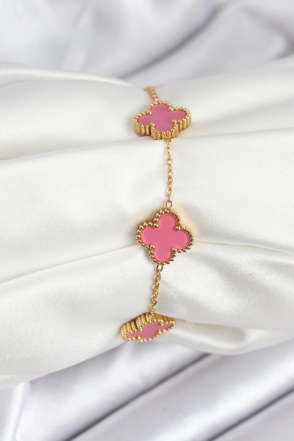 BFS 316L Çelik Gold Zincir Pembe Yonca Renk Bileklik