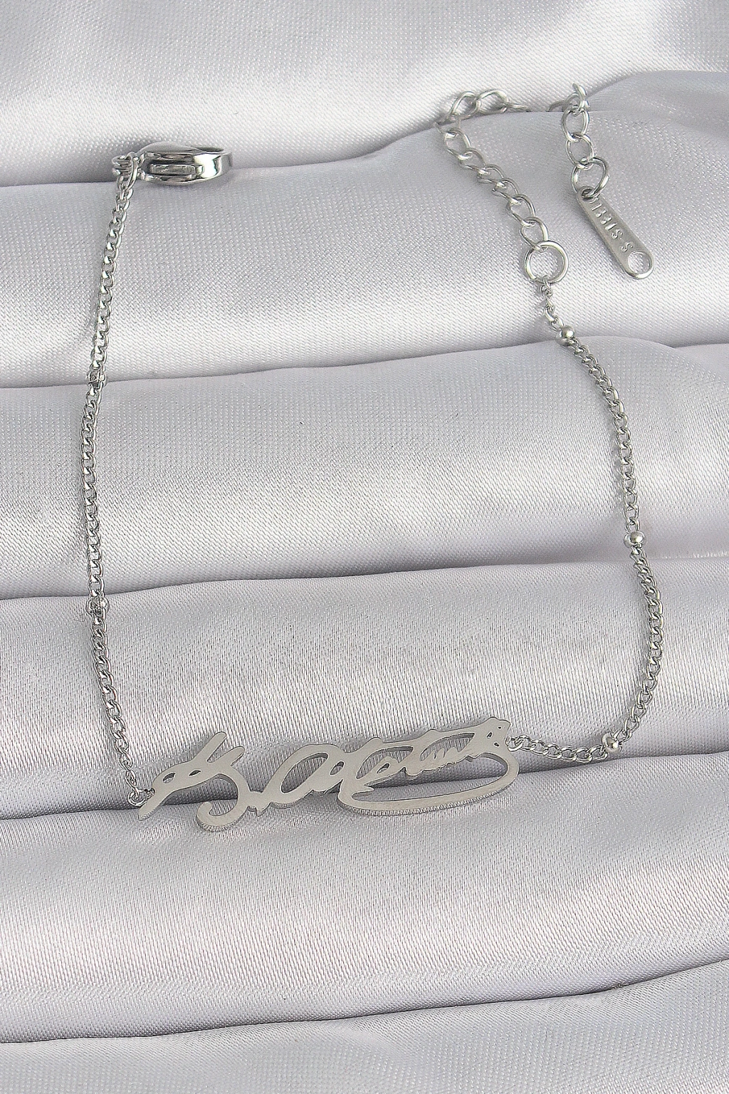 BFS 316L Çelik Gümüş Renk Atatürk İmza Model Kadın Bileklik