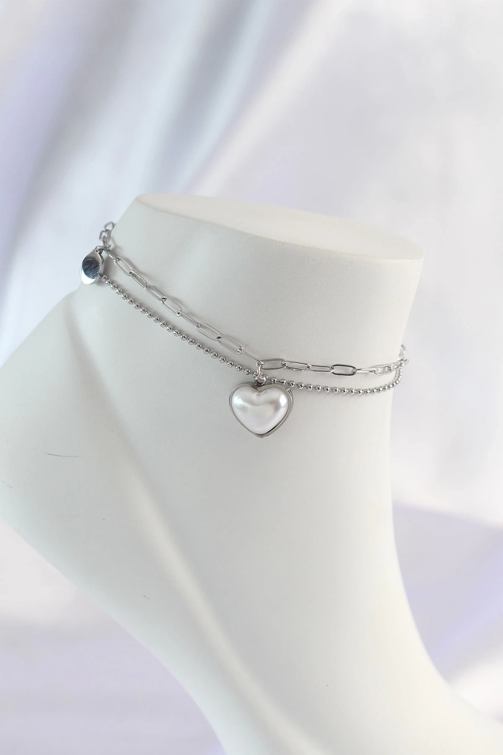 BFS 316L Çelik Gümüş Renk Beyaz Kalpli 2li Halhal
