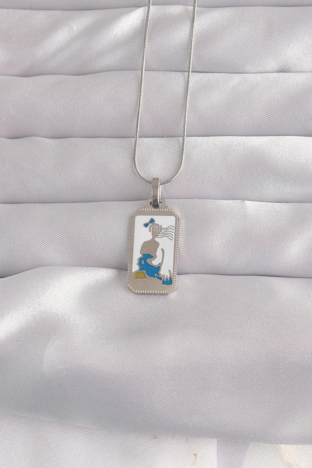 BFS 316L Çelik Gümüş Renk Beyaz Mineli Kız Figür Tarot Kolye