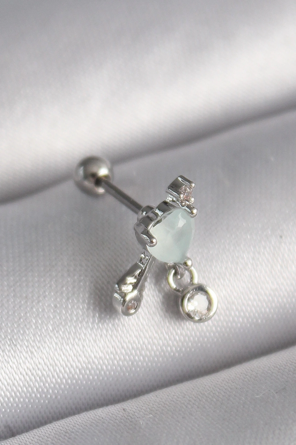BFS 316L Çelik Gümüş Renk Zirkon Taşlı Tragus Piercing