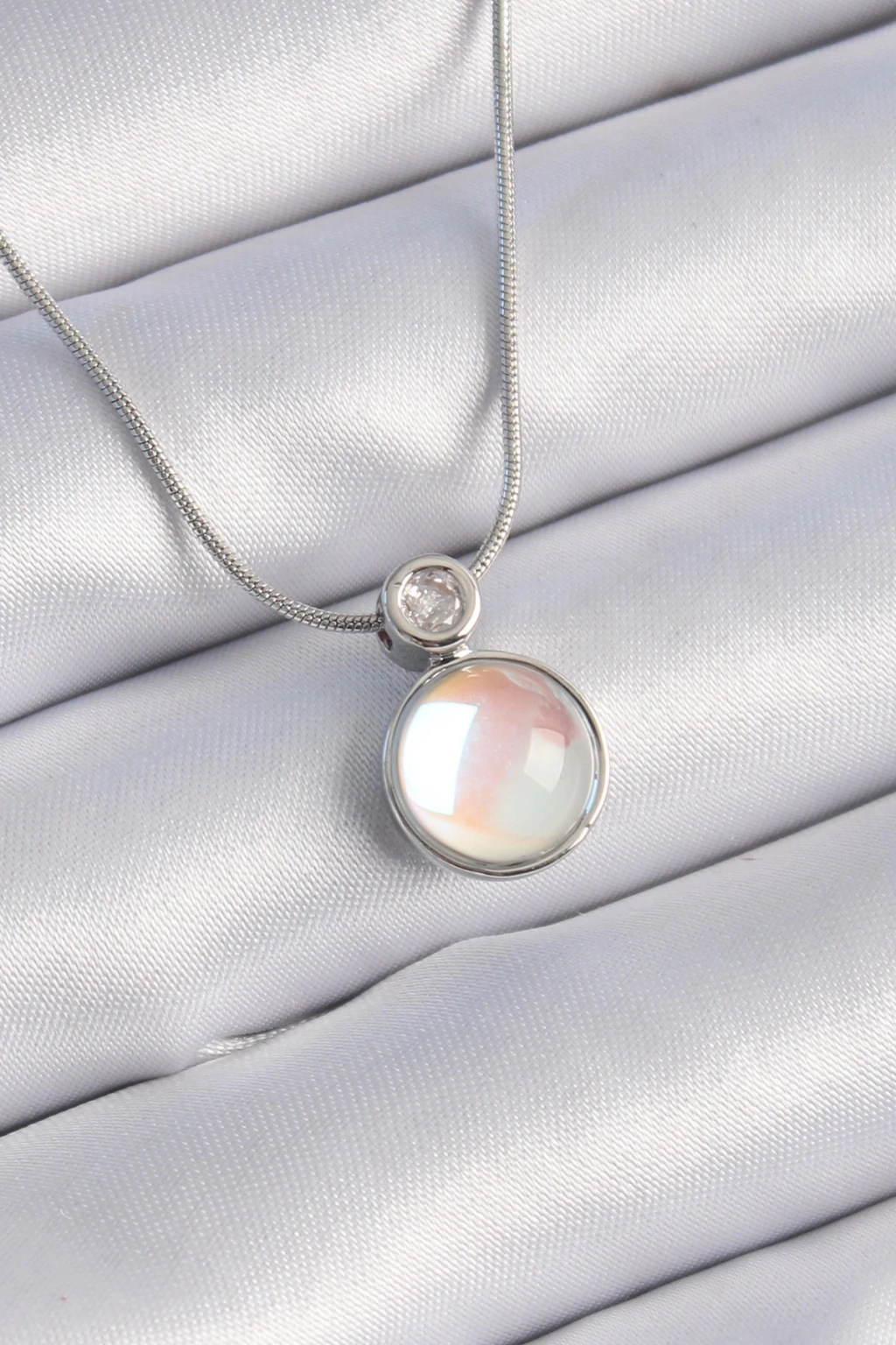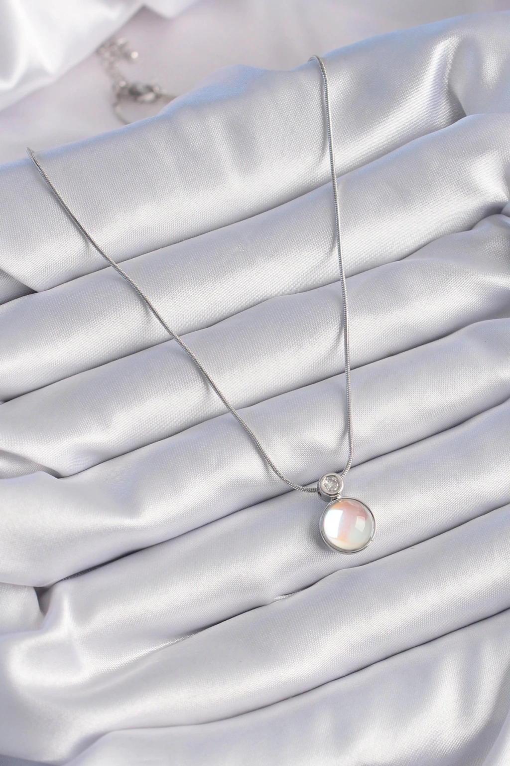 BFS 316L Çelik Gümüş Renk Beyaz Sedefli Vintage Model Kadın Kolye