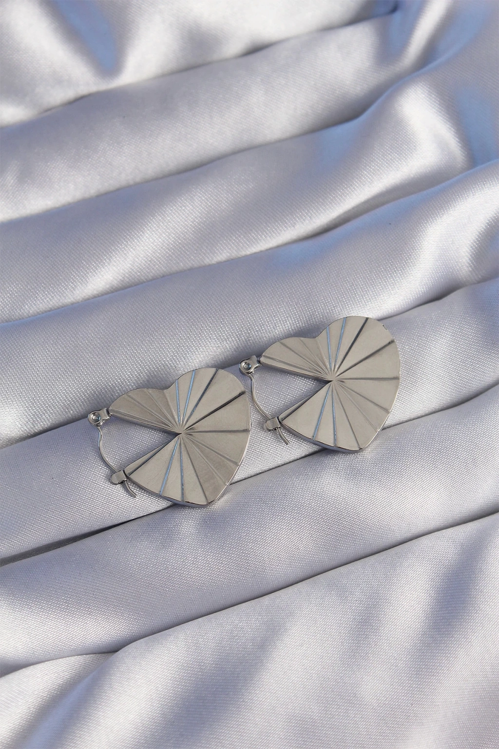 BFS 316L Çelik Gümüş Renk Çizgili Plaka Tasarımlı Kalp Küpe