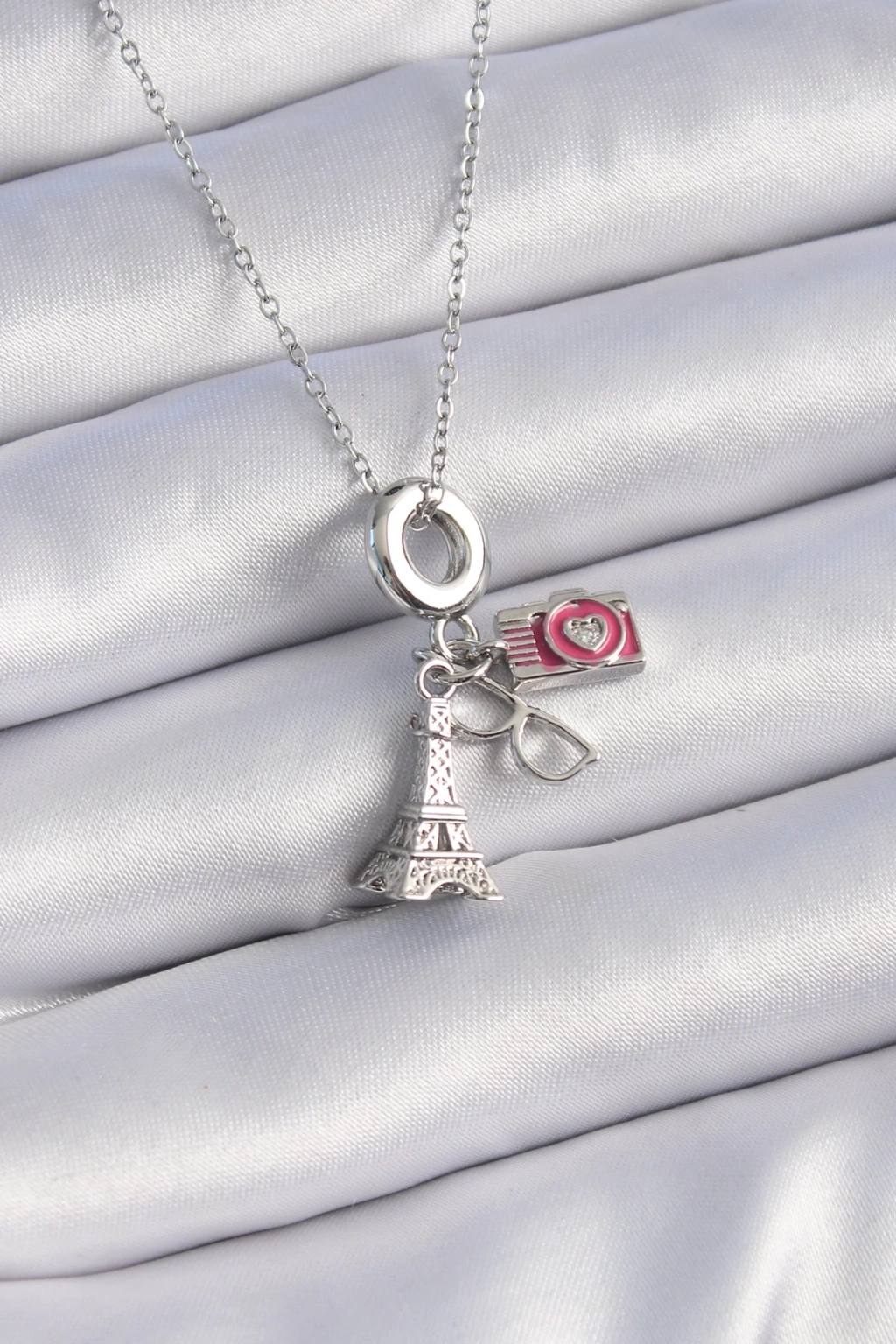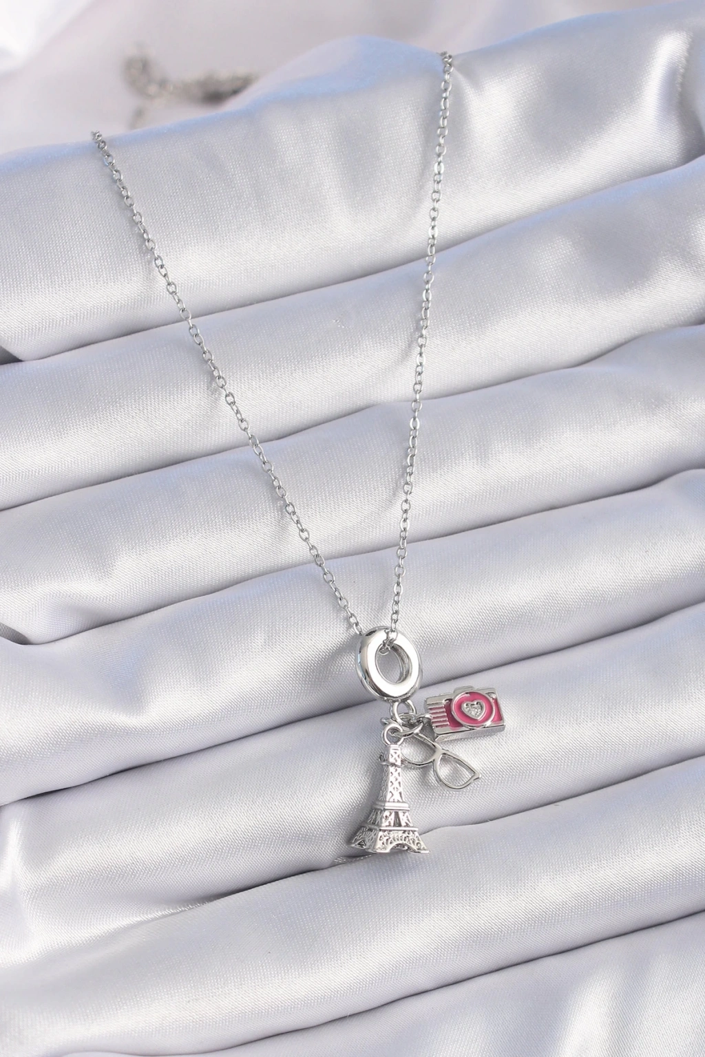 BFS 316L Çelik Gümüş Renk Eyfel Kule Fotoğraf Makinesi Model Charm Kadın Kolye