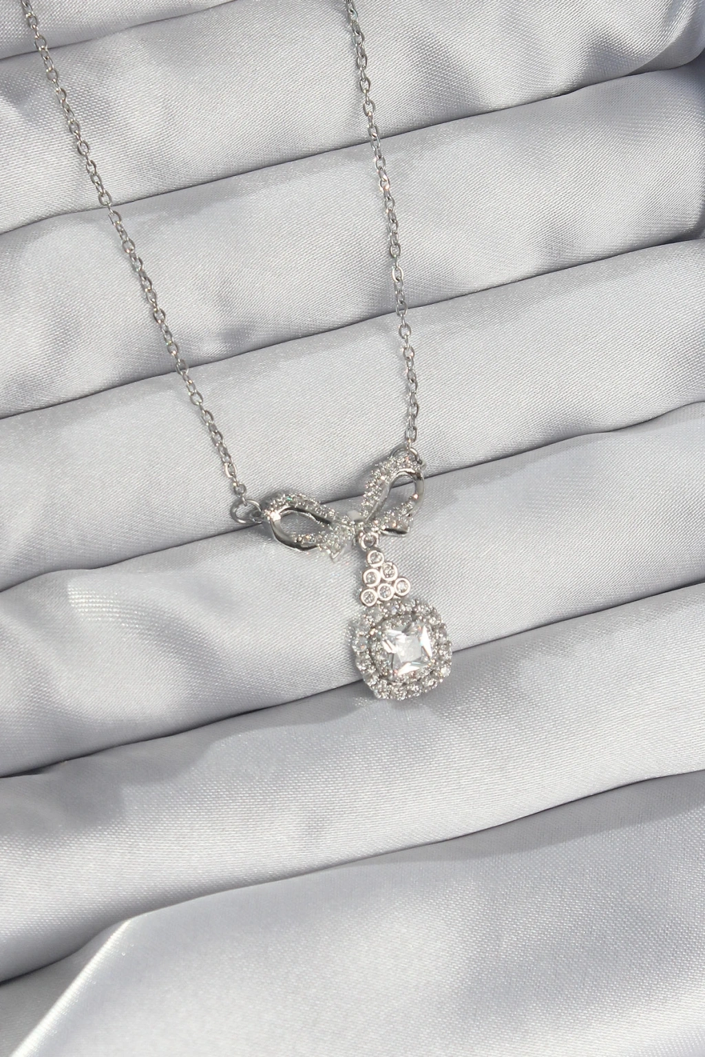 BFS 316L Çelik Gümüş Renk Fiyonk Detay Zirkon Taşlı Tektaş Kolye