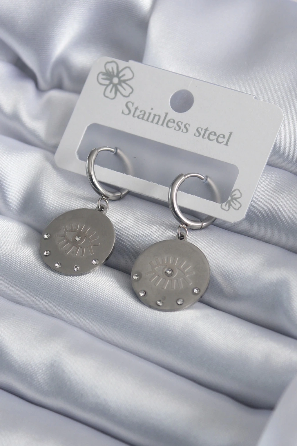 BFS 316L Çelik Gümüş Renk Göz İşleme Zirkon Taş Detay Kadın Küpe