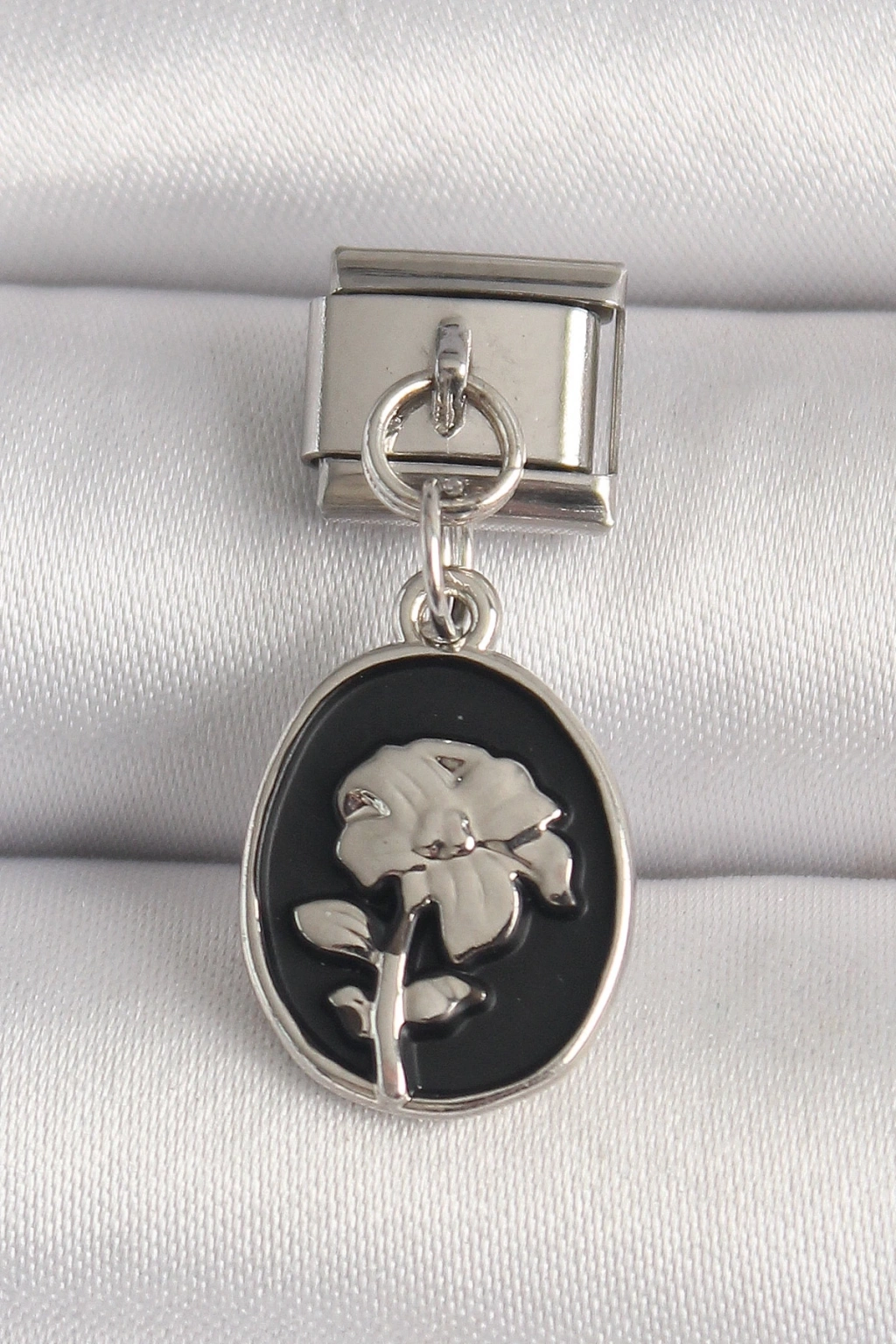 BFS 316L Çelik Gümüş Renk Gümüş Çiçek İşlemeli Siyah Portre Model Nomination Charm