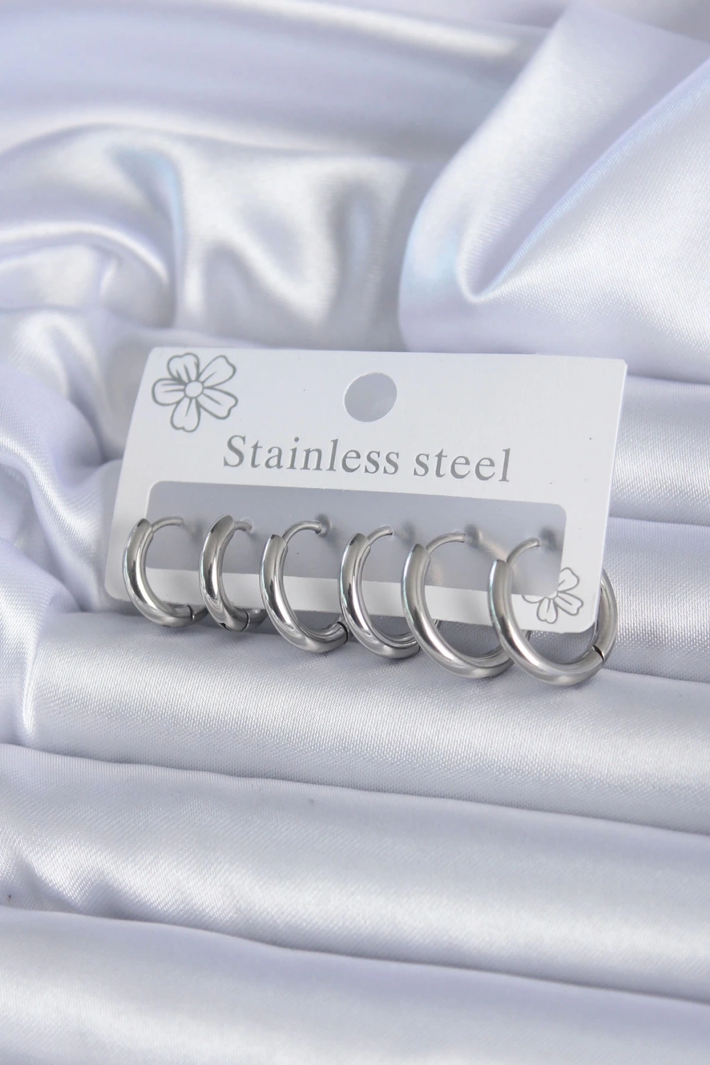 BFS 316L Çelik Gümüş Renk Halka Kadın Küpe Seti