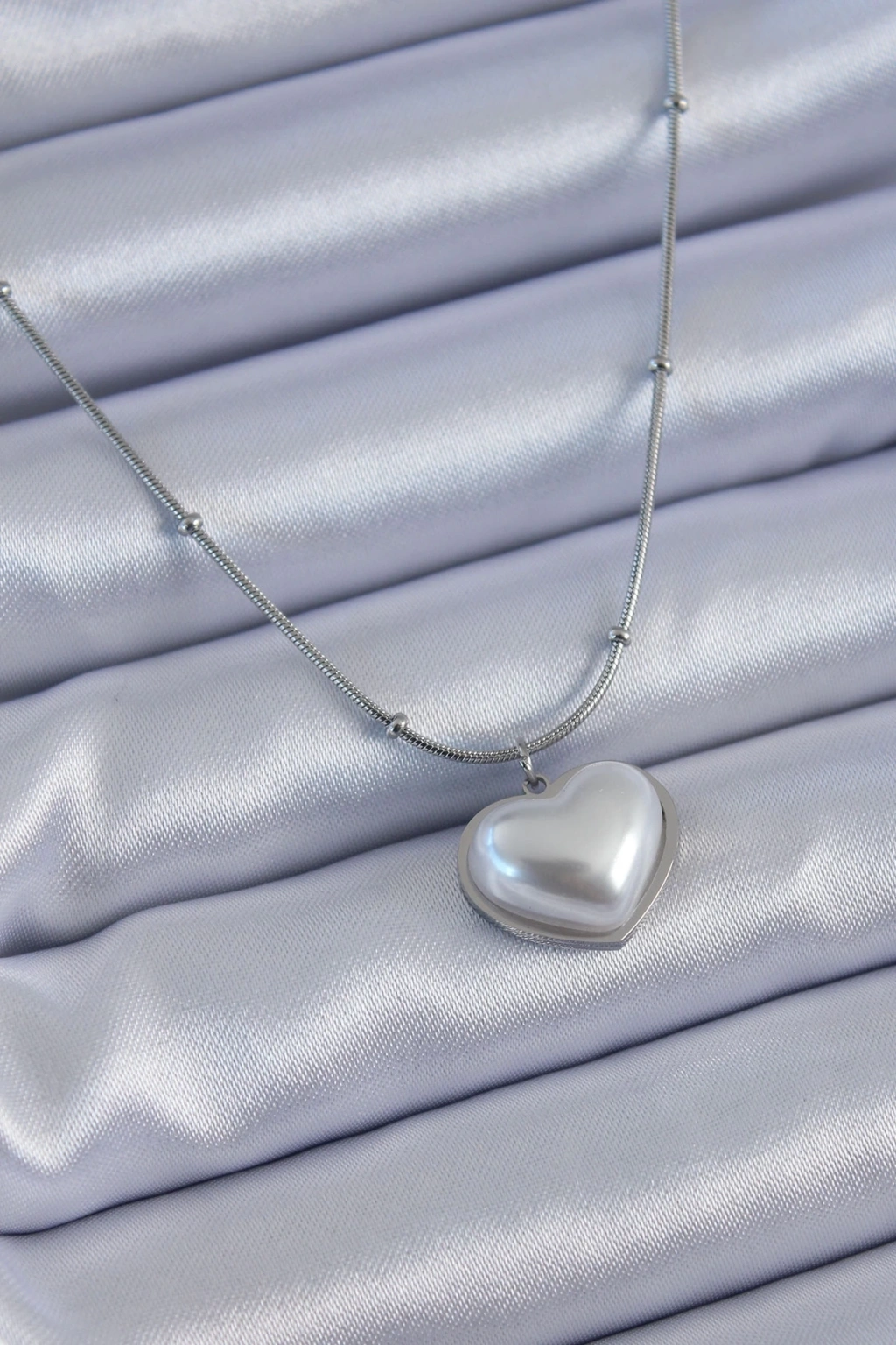 BFS 316L Çelik Gümüş Renk İncili Kalp Model Minimal Top Detay Kadın Kolye