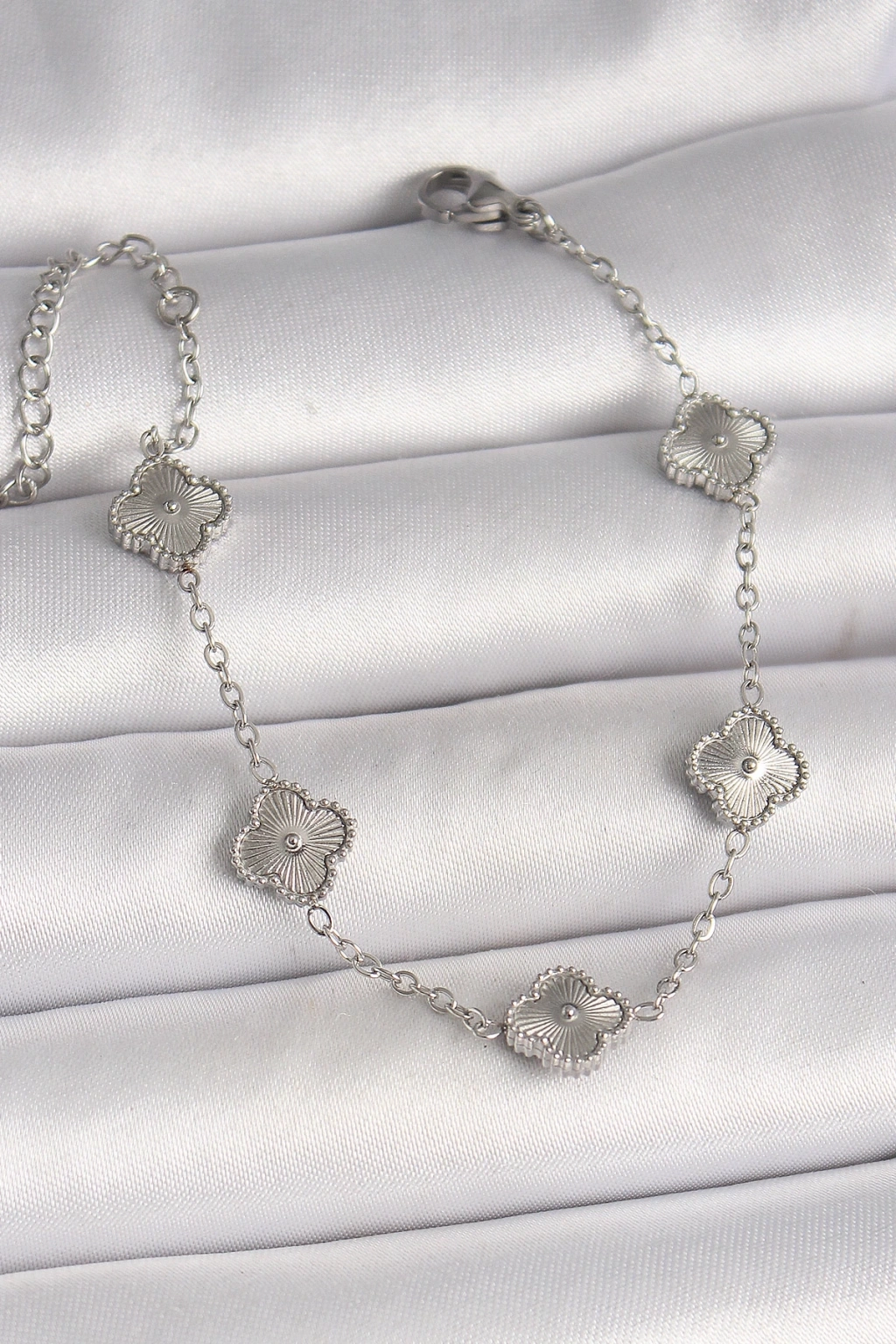 BFS 316L Çelik Gümüş Renk İşlemeli Baby Boy Yonca Model Kadın Bileklik