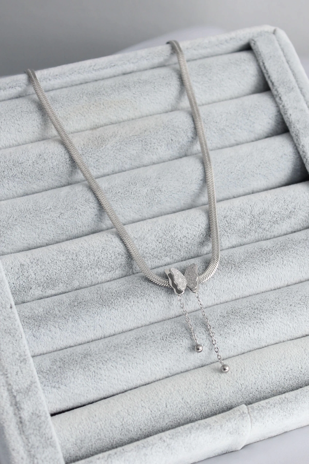 BFS 316L Çelik Gümüş Renk İtalyan Zincir Model Simli Kelebek Figür Kadın Kolye