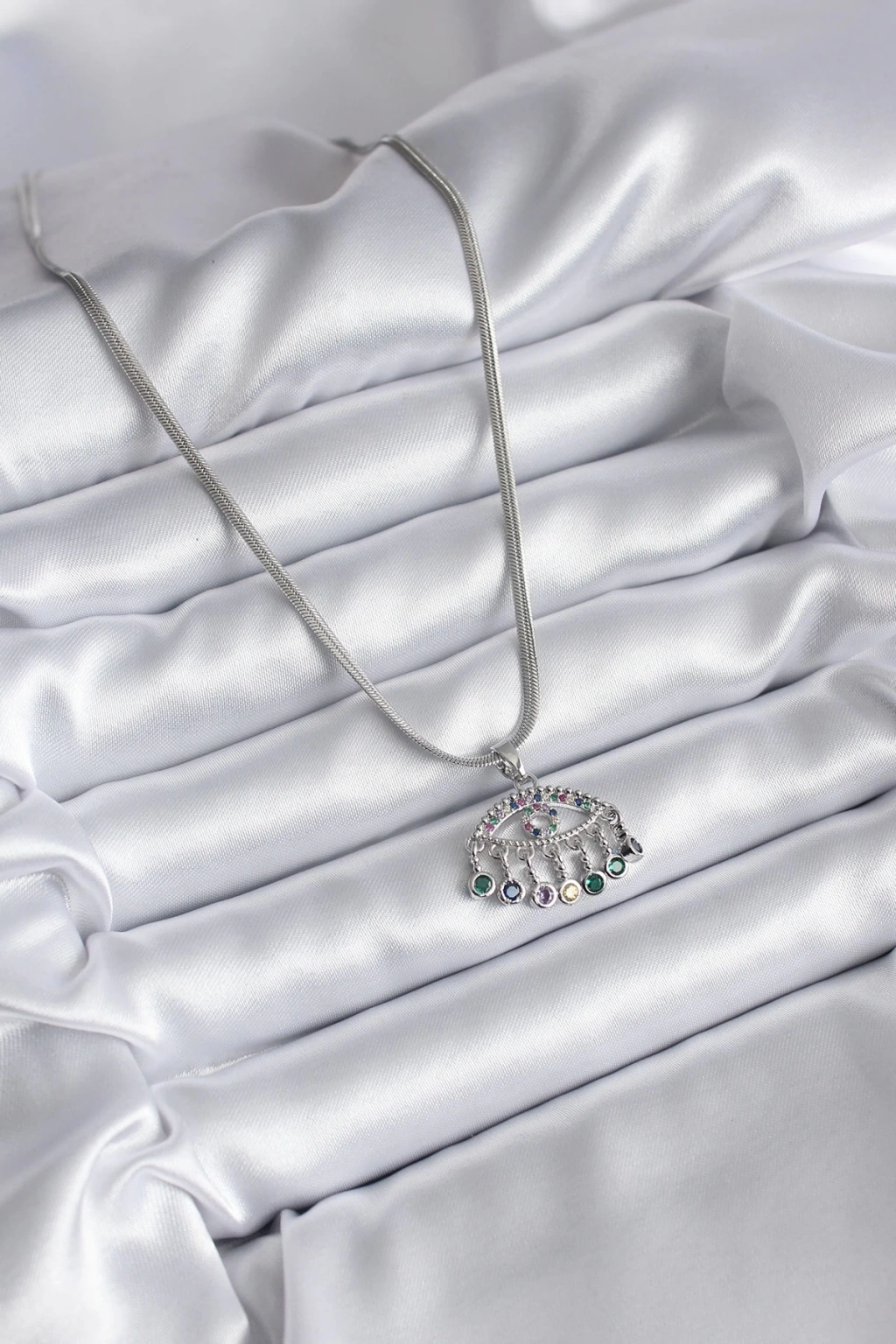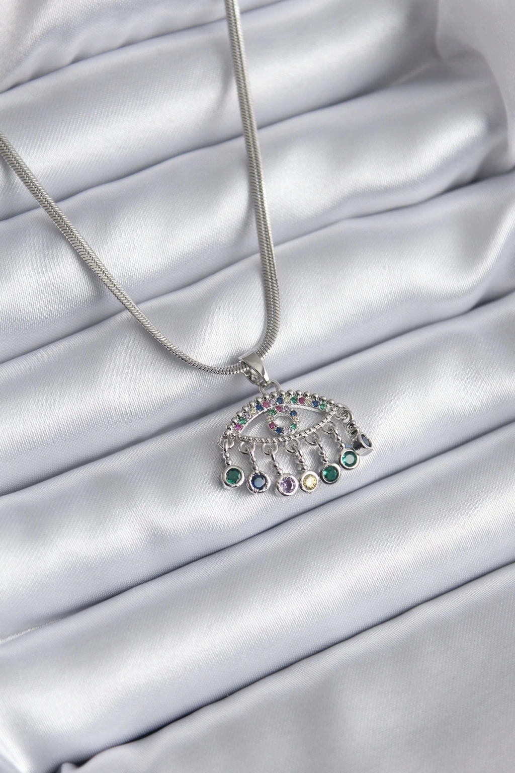 BFS 316L Çelik Gümüş Renk İtalyan Zincir Zirkon Taşlı Göz Figür Kadın Kolye