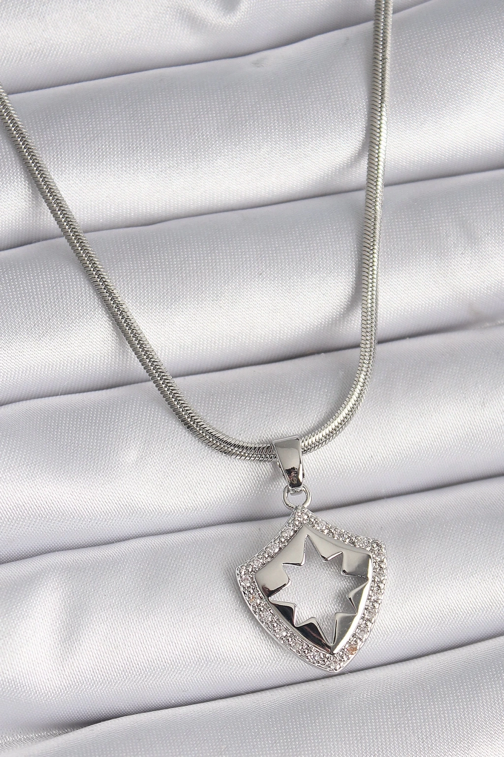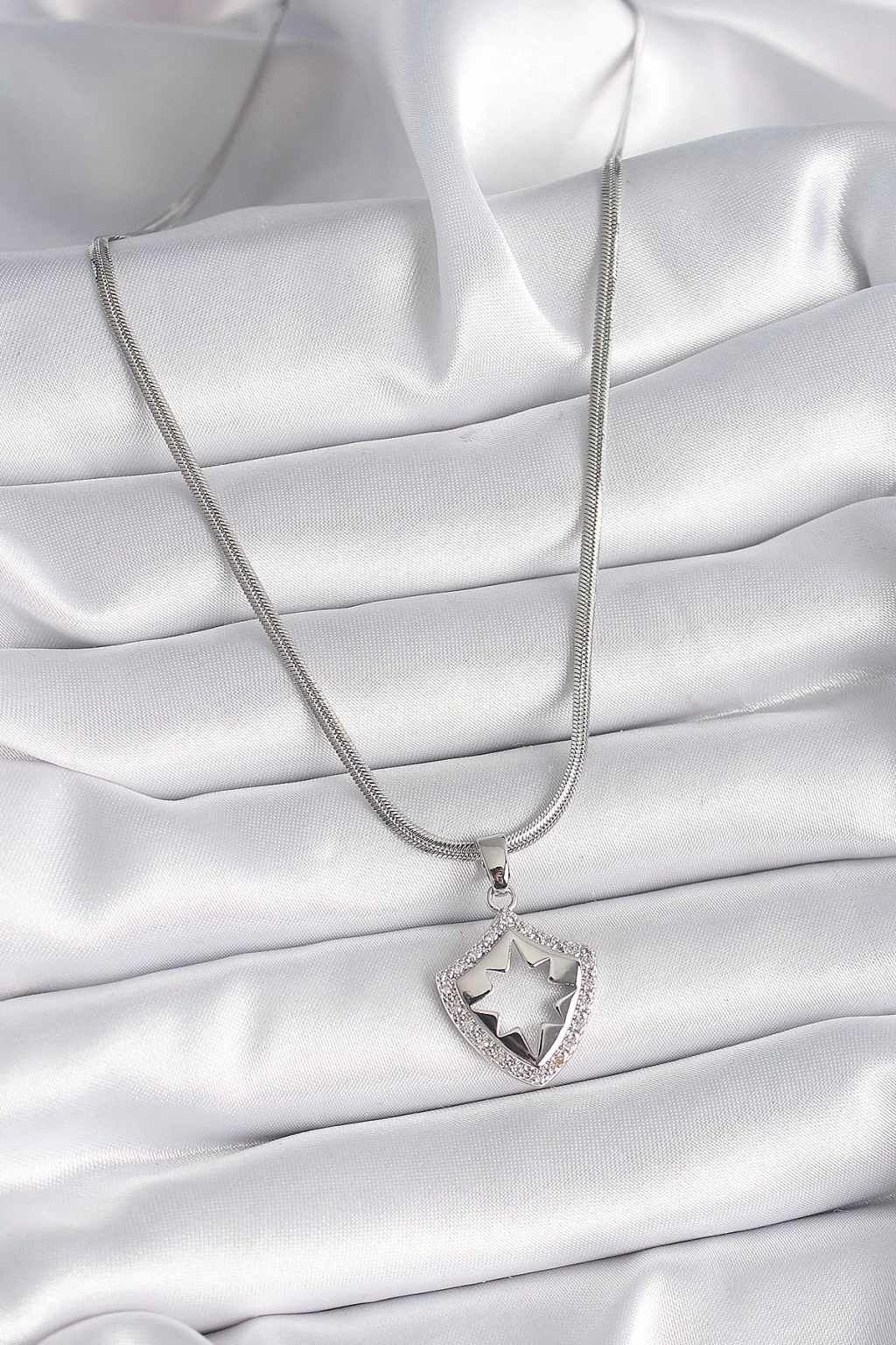 BFS 316L Çelik Gümüş Renk İtalyan Zincir Zirkon Taşlı Kutup Yıldızı İşleme Model Kadın Kolye