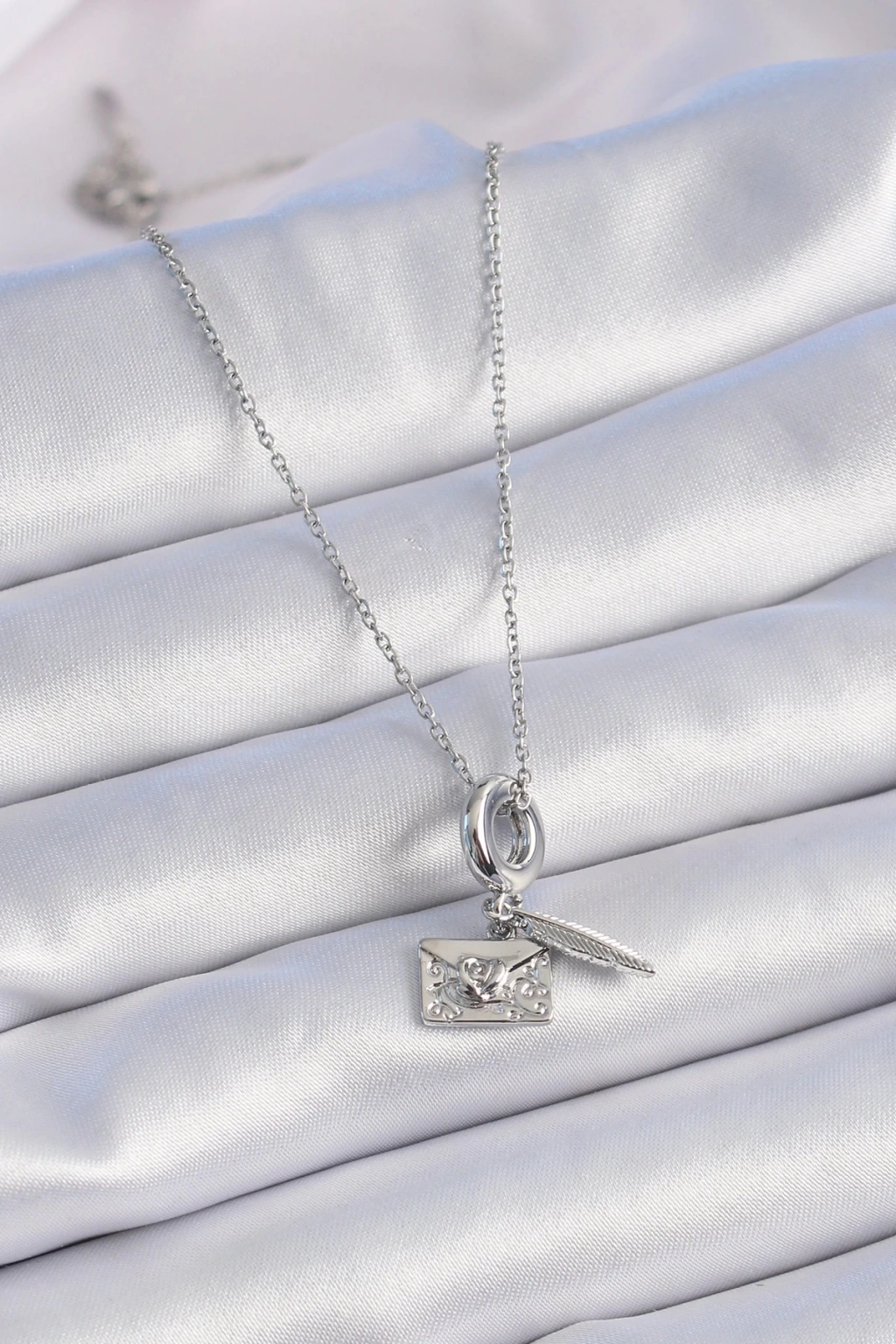 BFS 316L Çelik Gümüş Renk Kalp Detay Mektup Figür Charm Model Kadın Kolye