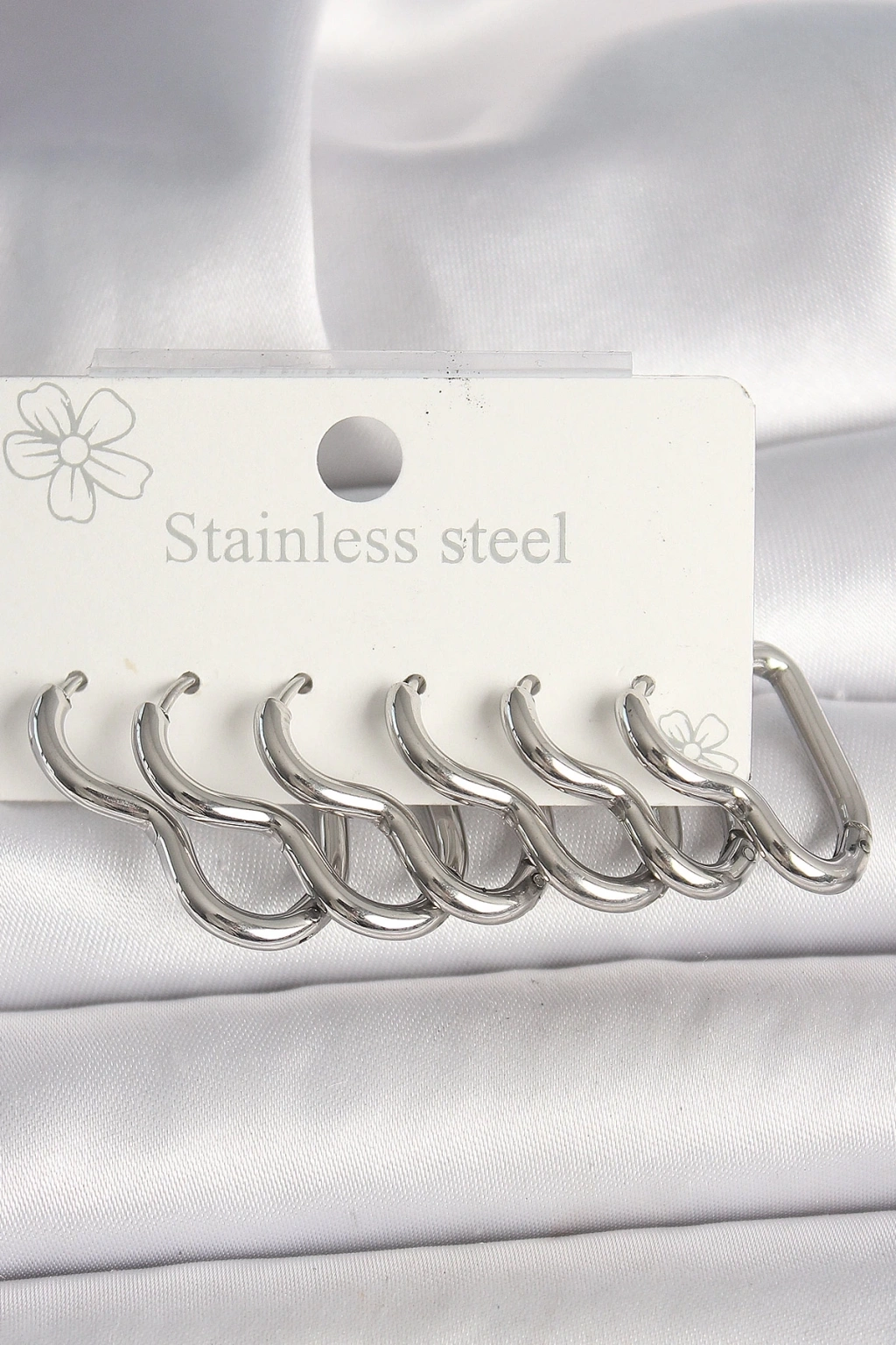 BFS 316L Çelik Gümüş Renk Kalp Model Kadın Küpe Seti