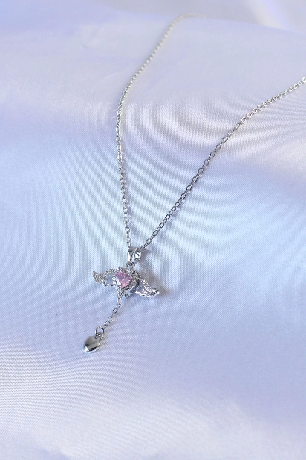BFS 316L Çelik Gümüş Renk Kanatlı Kalp Figür Zirkon Taş Detay Kadın Kolye