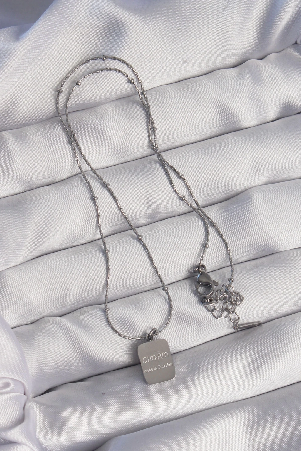 BFS 316L Çelik Gümüş Renk Kare Charm Model Kolye