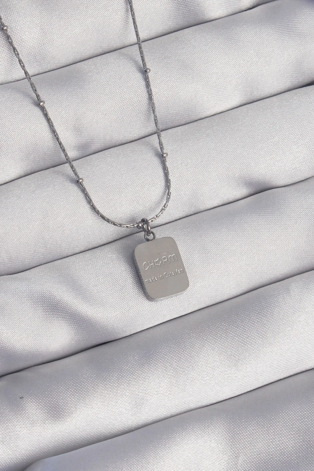 BFS 316L Çelik Gümüş Renk Kare Charm Model Kolye