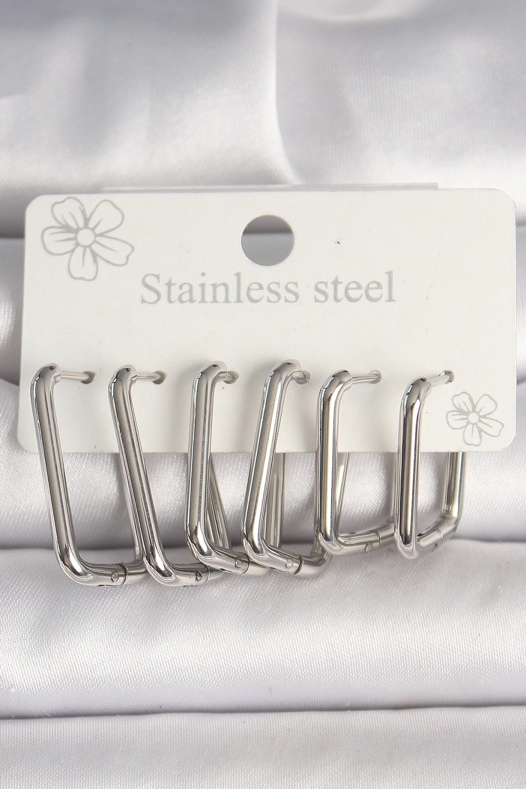 BFS 316L Çelik Gümüş Renk Kare Model Kadın Küpe Seti