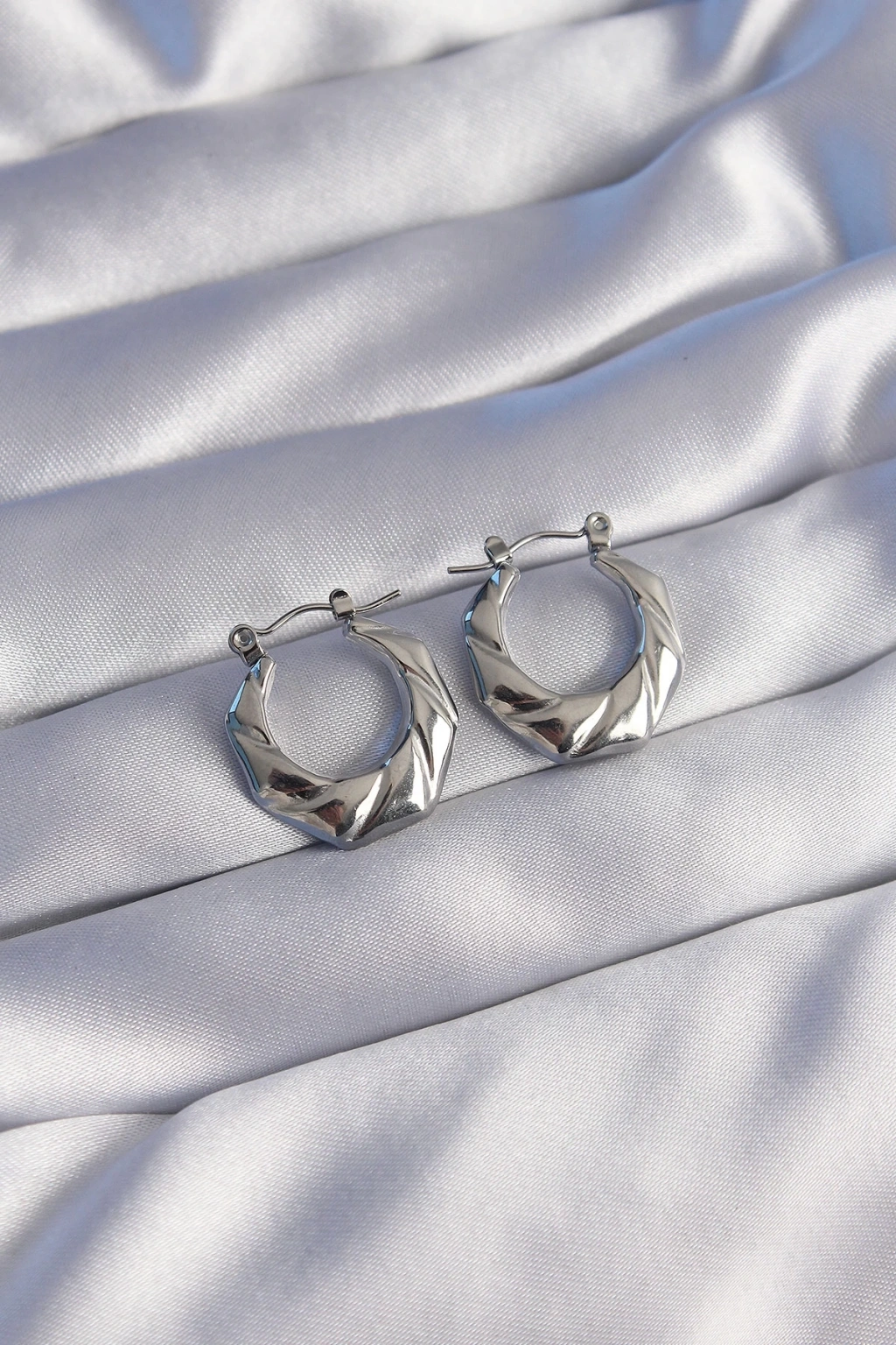 BFS 316L Çelik Gümüş Renk Kıvrımlı Görünüm Geometrik Model Küpe