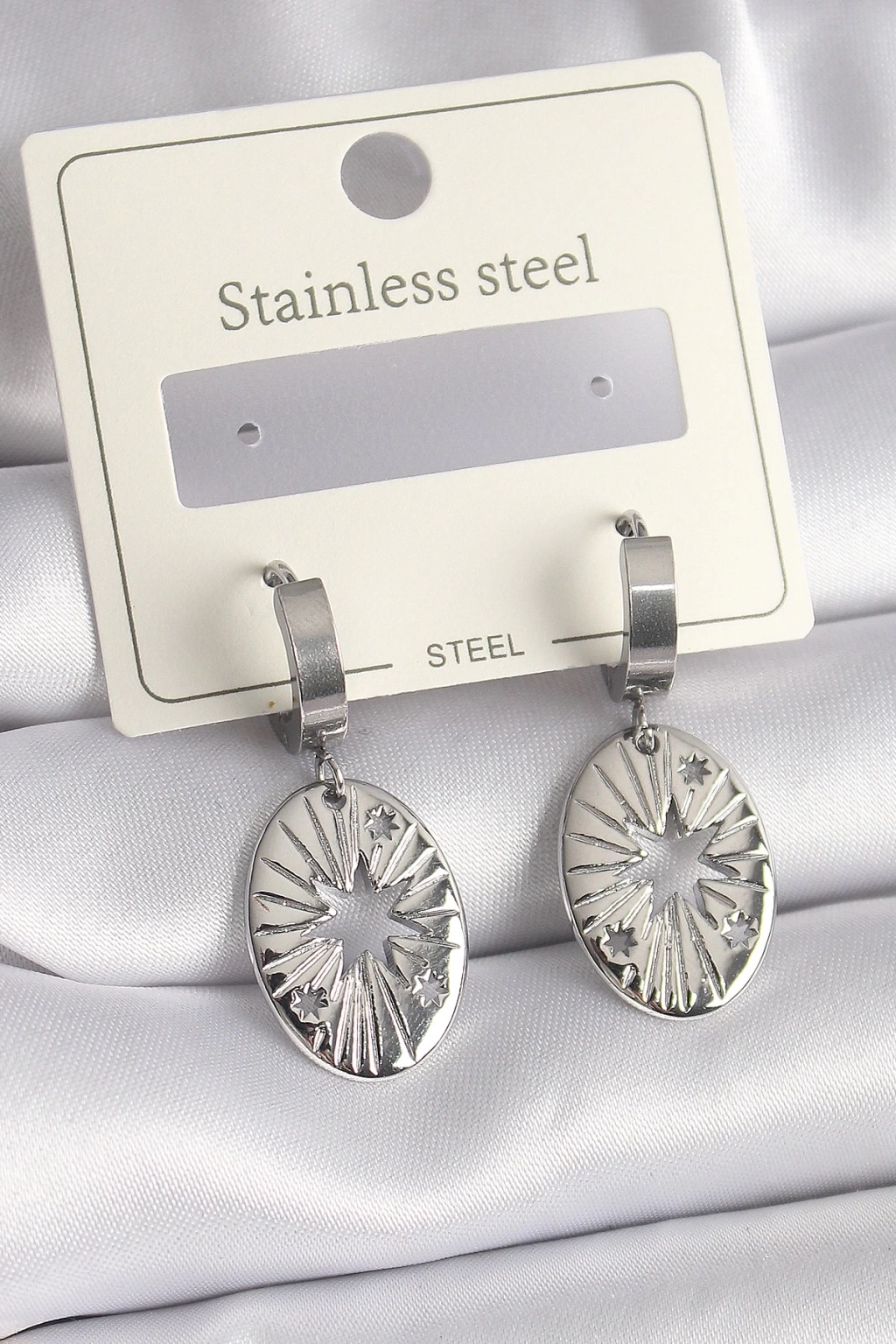 BFS 316L Çelik Gümüş Renk Kutup Yıldızı İşleme Kadın Küpe
