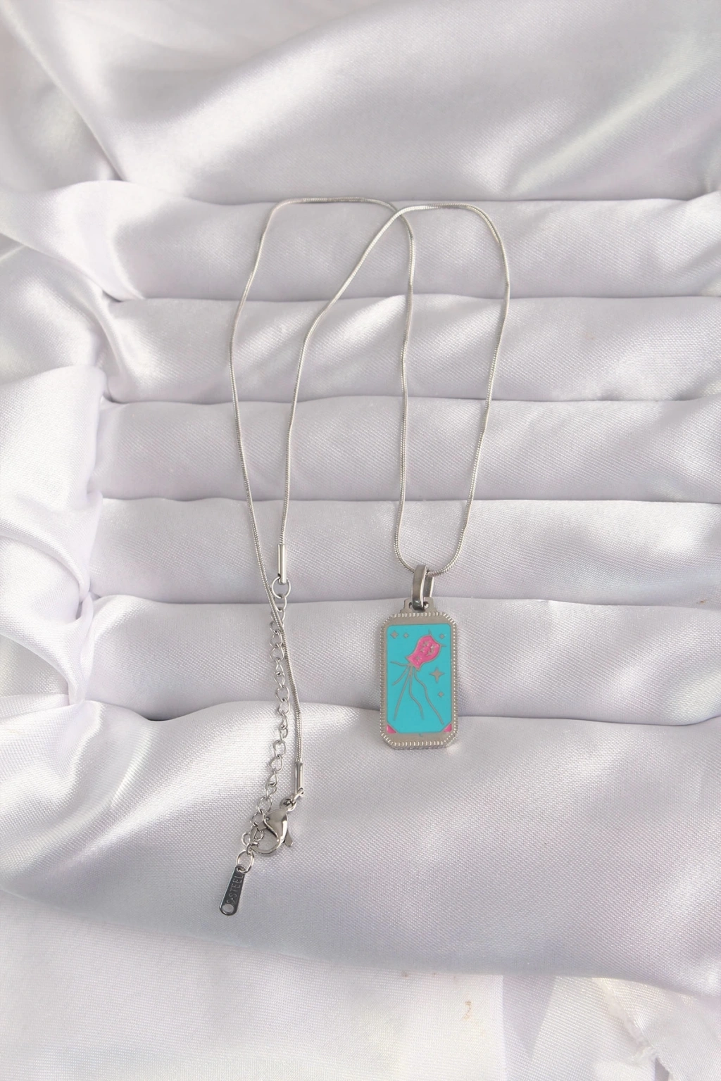 BFS 316L Çelik Gümüş Renk Mavi Mineli Tarot Kolye