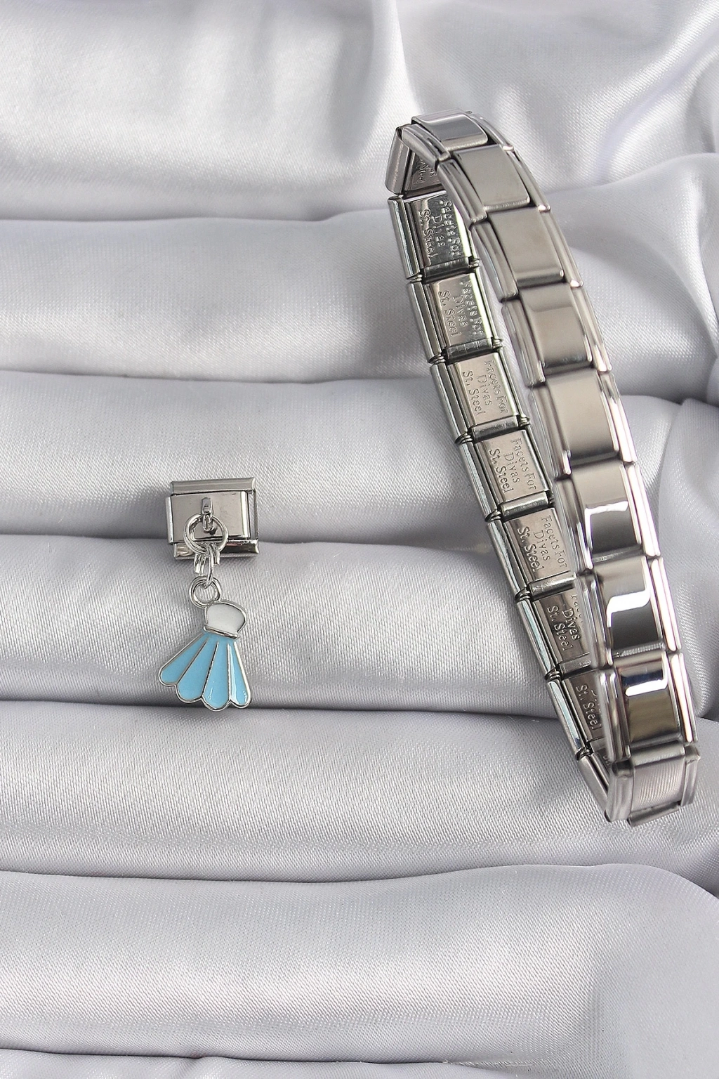 BFS 316L Çelik Gümüş Renk Mavi Renk Sallantı Elbise Model Nomination Charm
