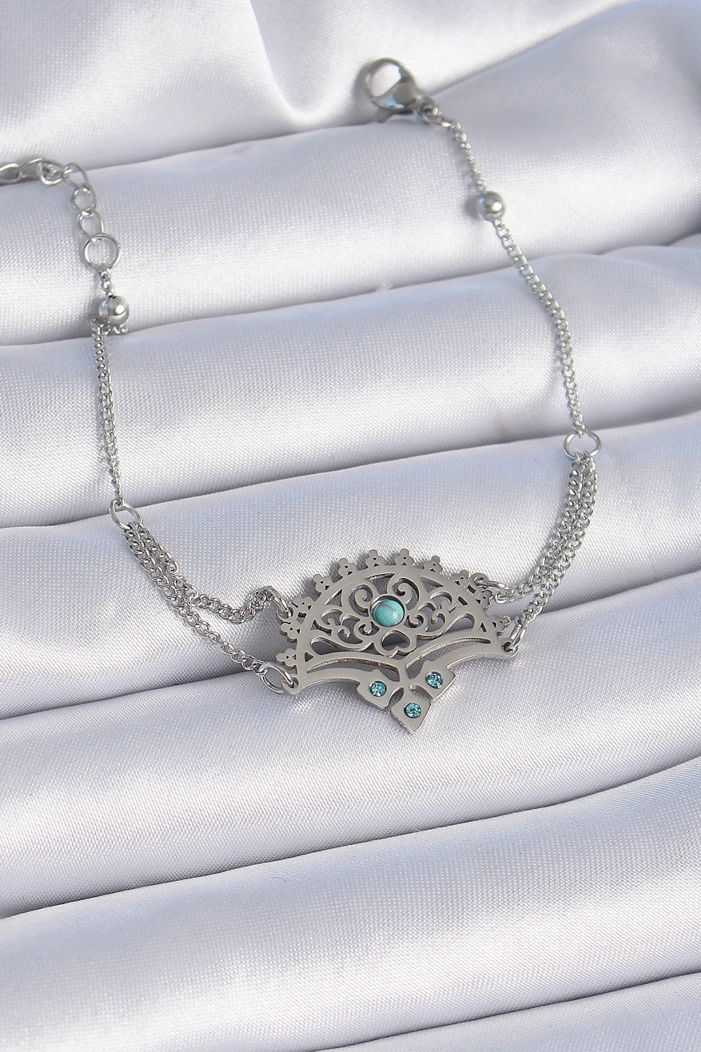 BFS 316L Çelik Gümüş Renk Mavi Taşlı Etnik Desen Kadın Bileklik