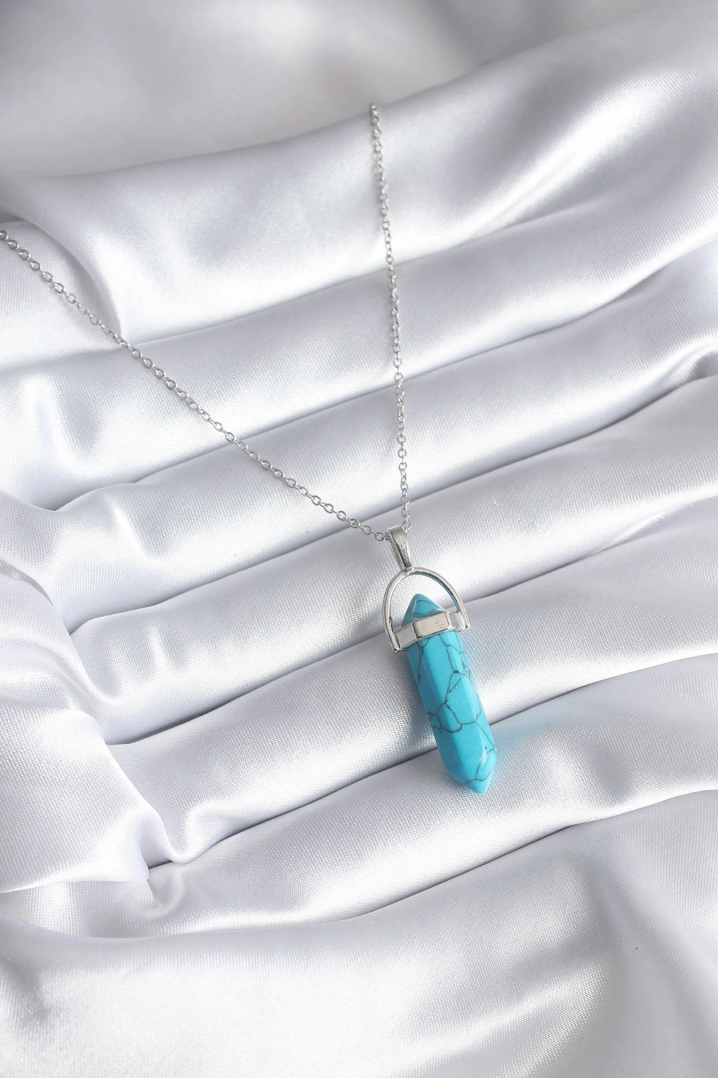 BFS 316L Çelik Gümüş Renk Mavi Taşlı Model Kadın Kolye