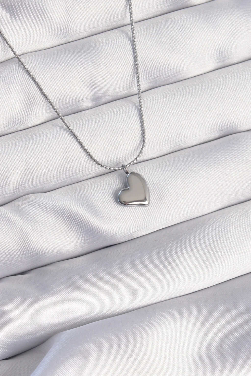 BFS 316L Çelik Gümüş Renk Minimal Kalp Tasarımlı Kolye