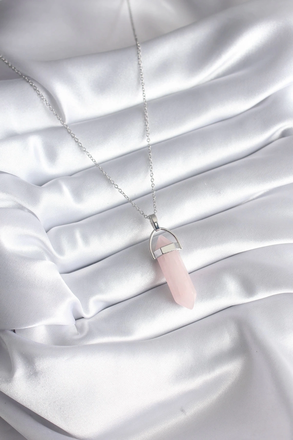 BFS 316L Çelik Gümüş Renk Pembe Taşlı Kadın Kolye