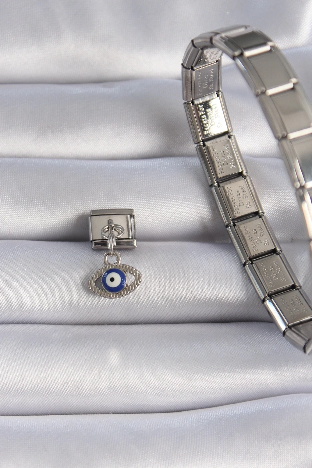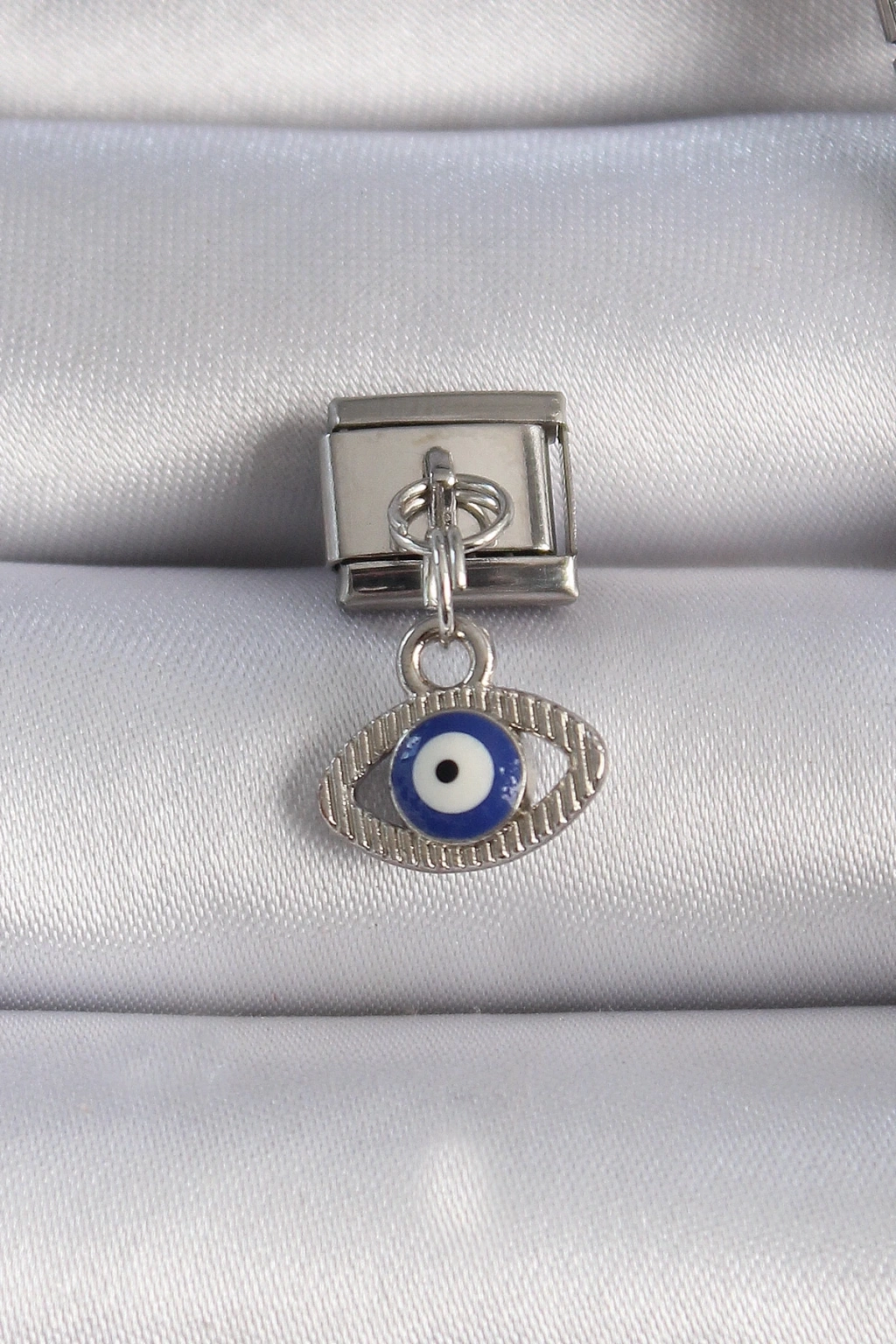 BFS 316L Çelik Gümüş Renk Sallantılı Göz Figür Nazar Boncuk Detay Nomination Charm