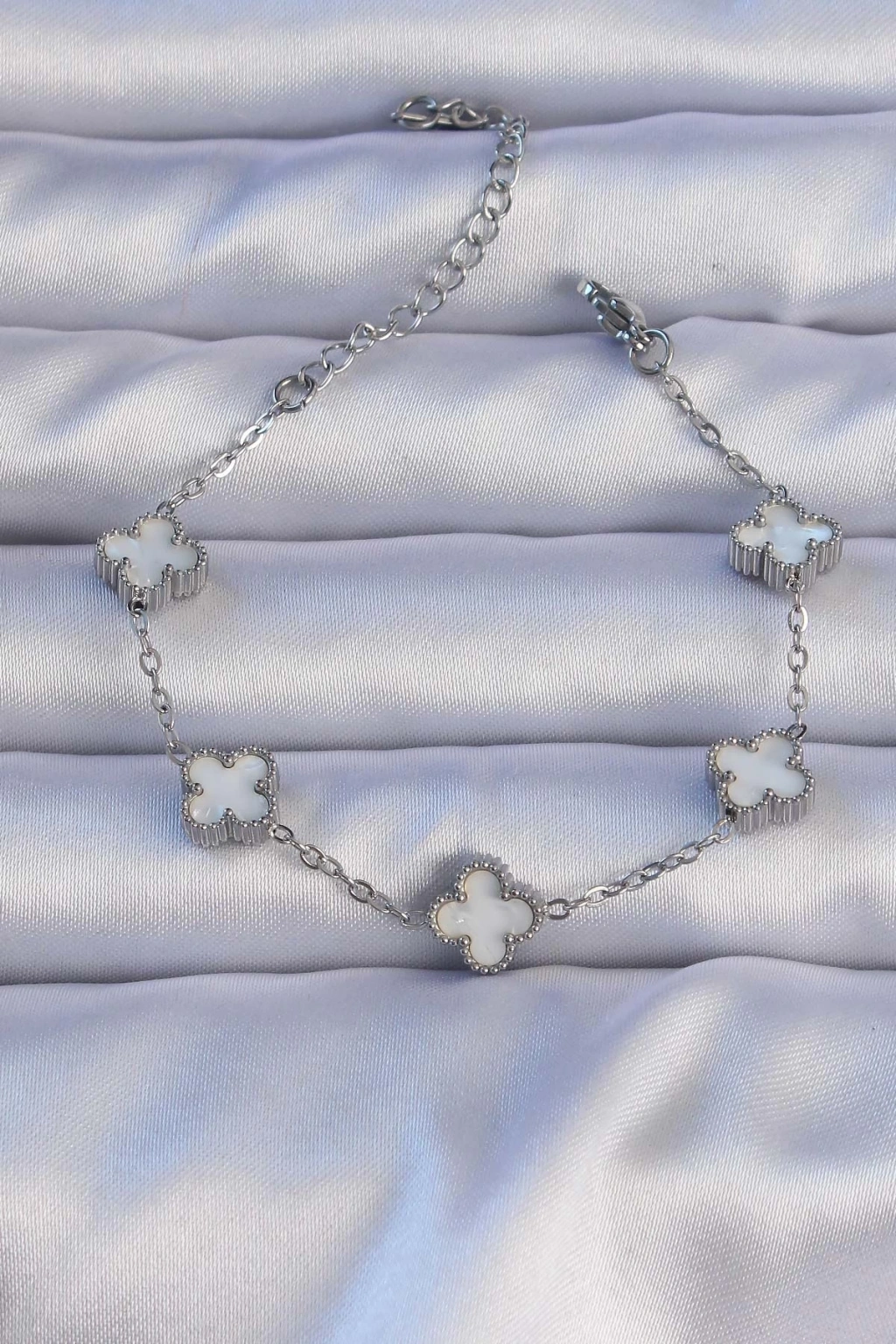 BFS 316L Çelik Gümüş Renk Sedefli Baby Boy Yonca Model Bileklik