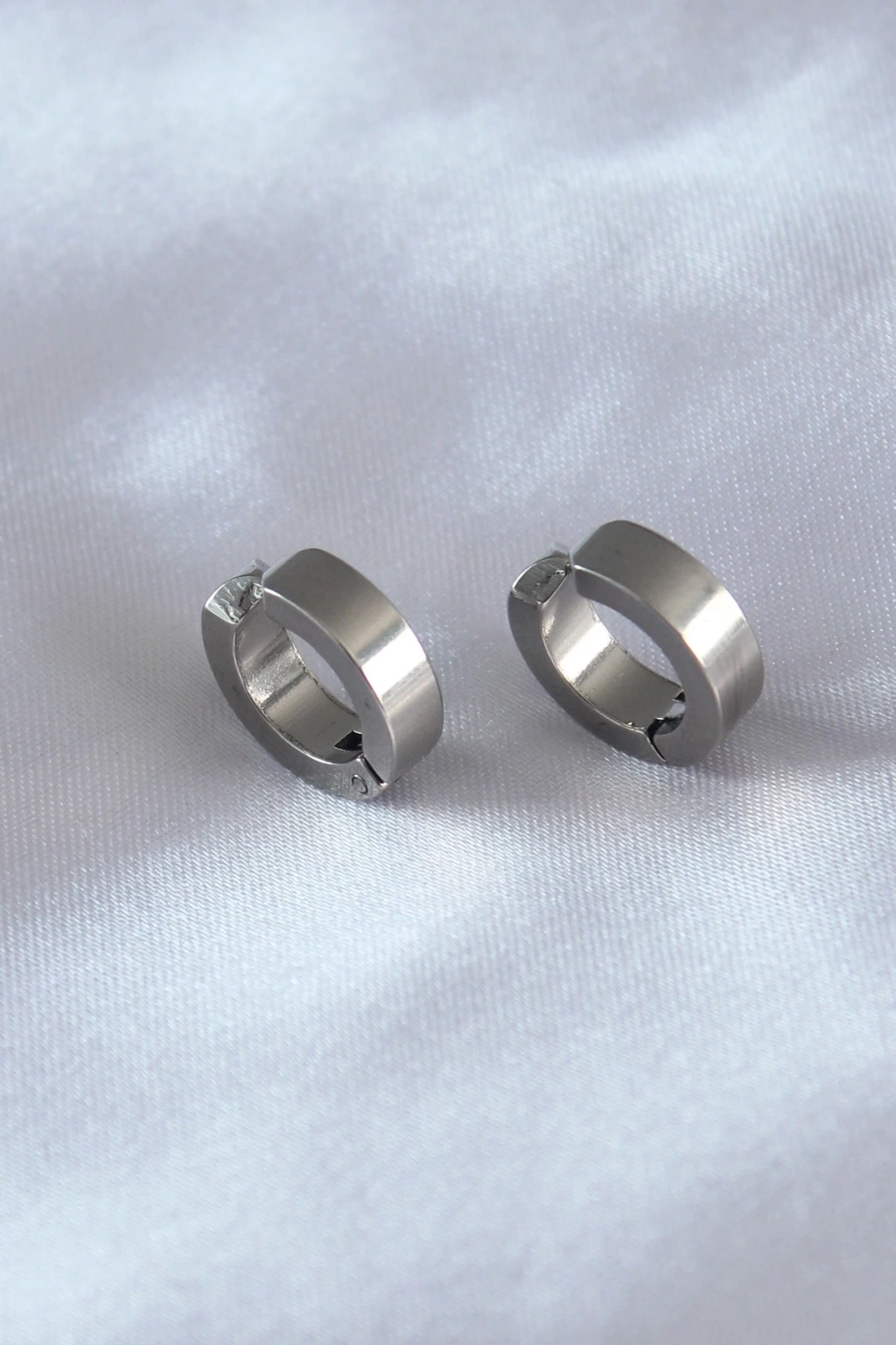 BFS 316L Çelik Gümüş Renk Sıkıştırmalı Erkek Küpe