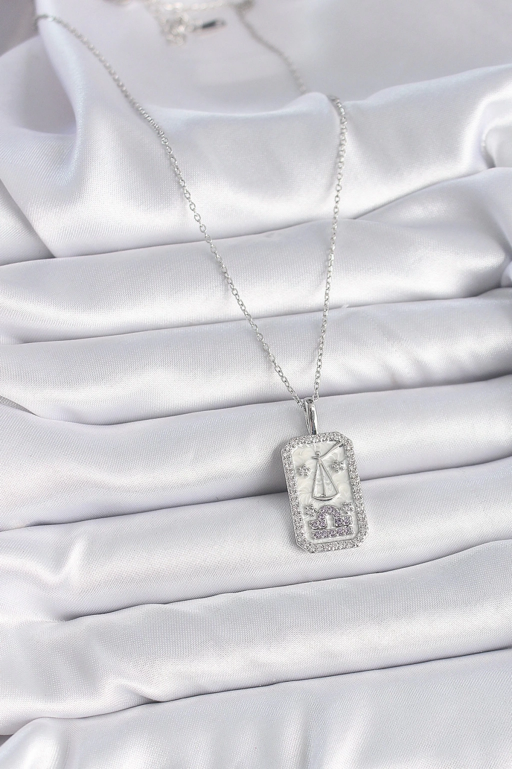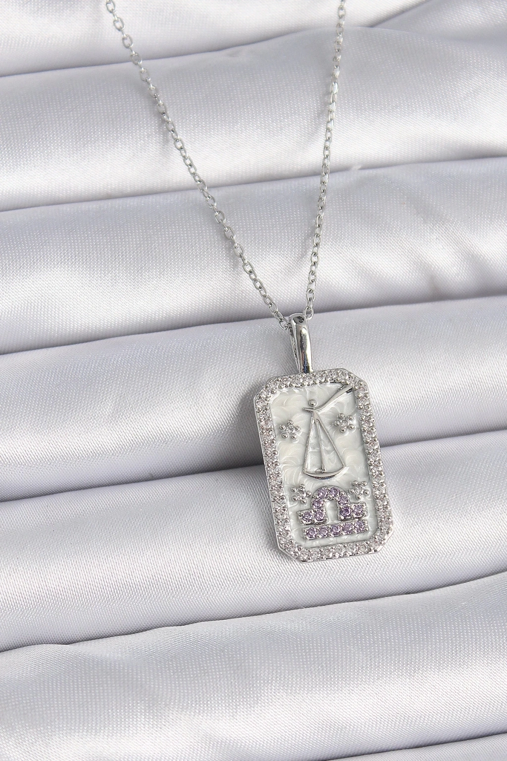 BFS 316L Çelik Gümüş Renk Terazi Burcu Zirkon Taşlı Kadın Kolye