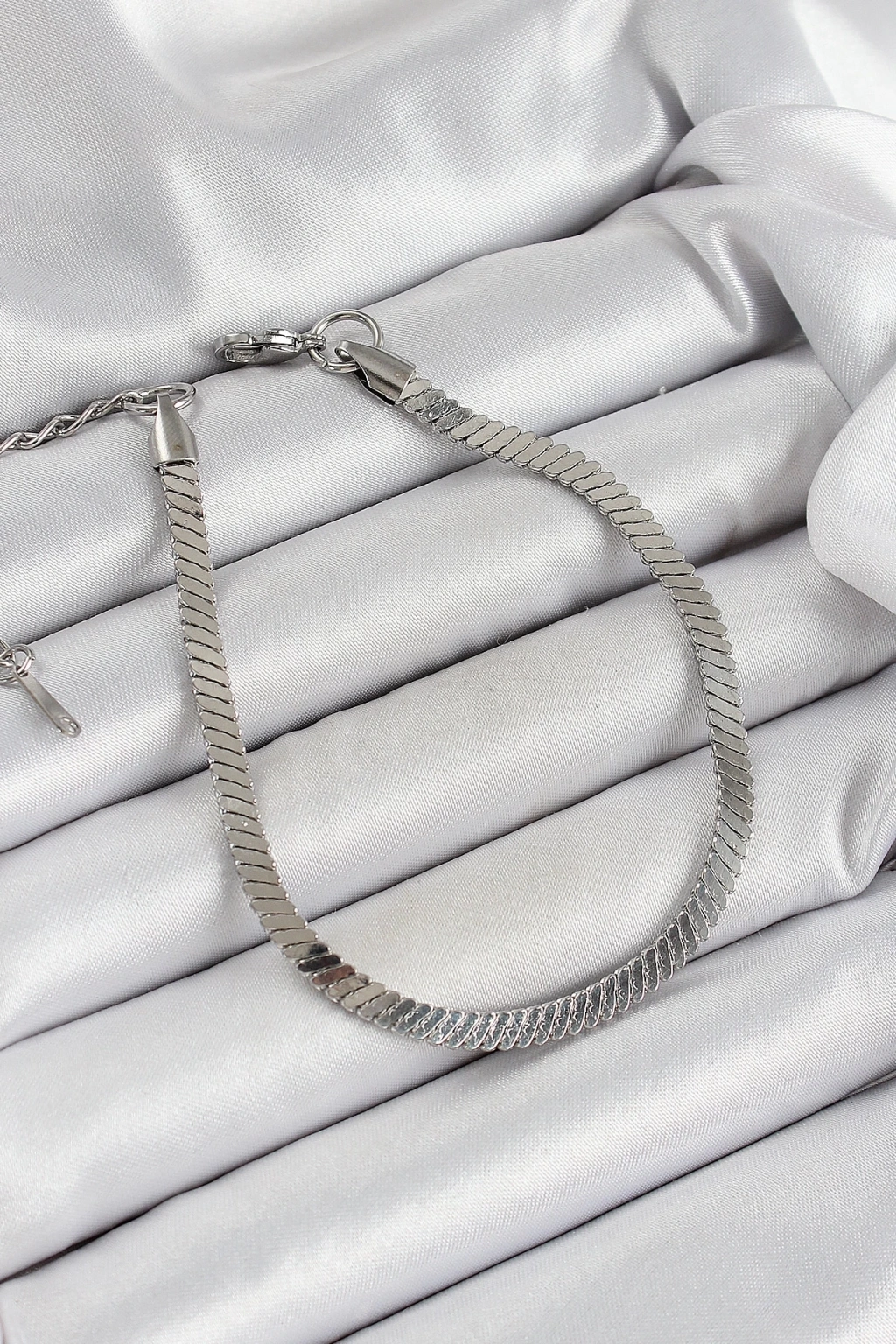 BFS 316L Çelik Gümüş Renk Yassı Zincir Model Kadın Bileklik