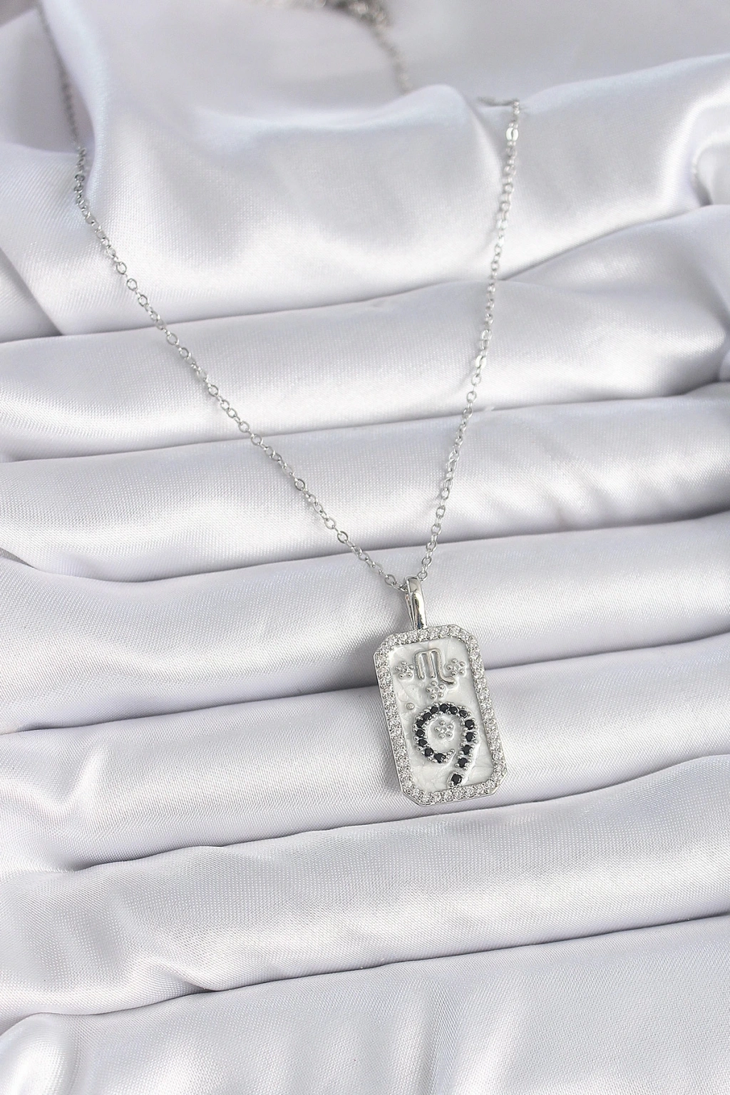 BFS 316L Çelik Gümüş Renk Zincir Akrep Burcu Zirkon Taşlı Kadın Kolye