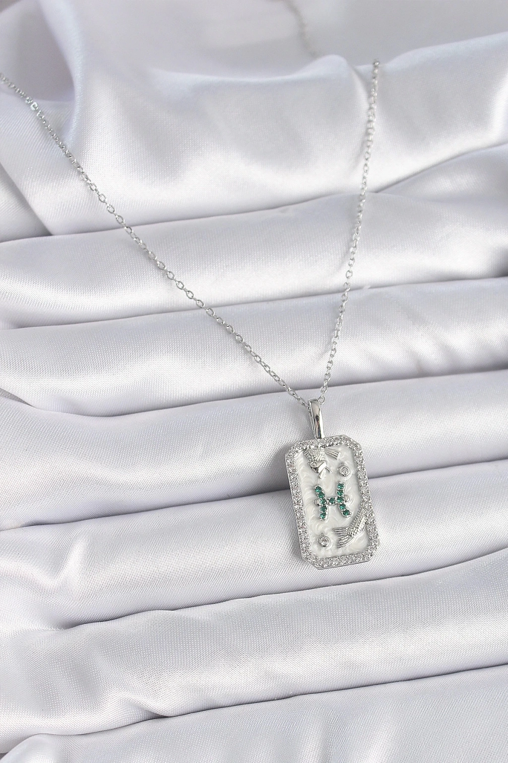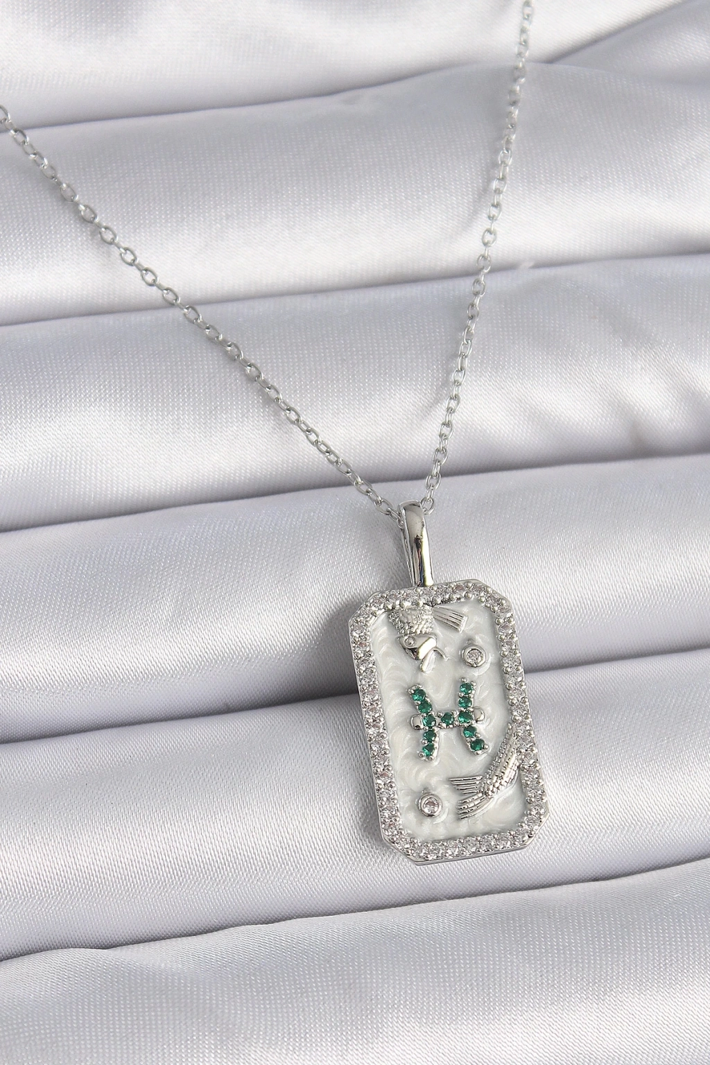 BFS 316L Çelik Gümüş Renk Zincir Balık Burcu Zirkon Taşlı Kadın Kolye