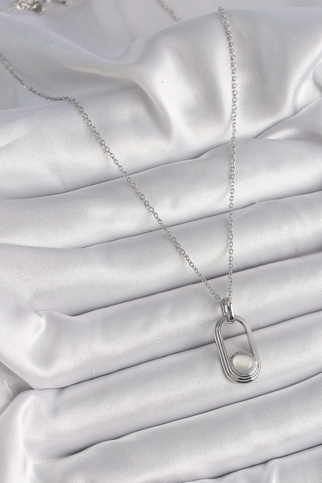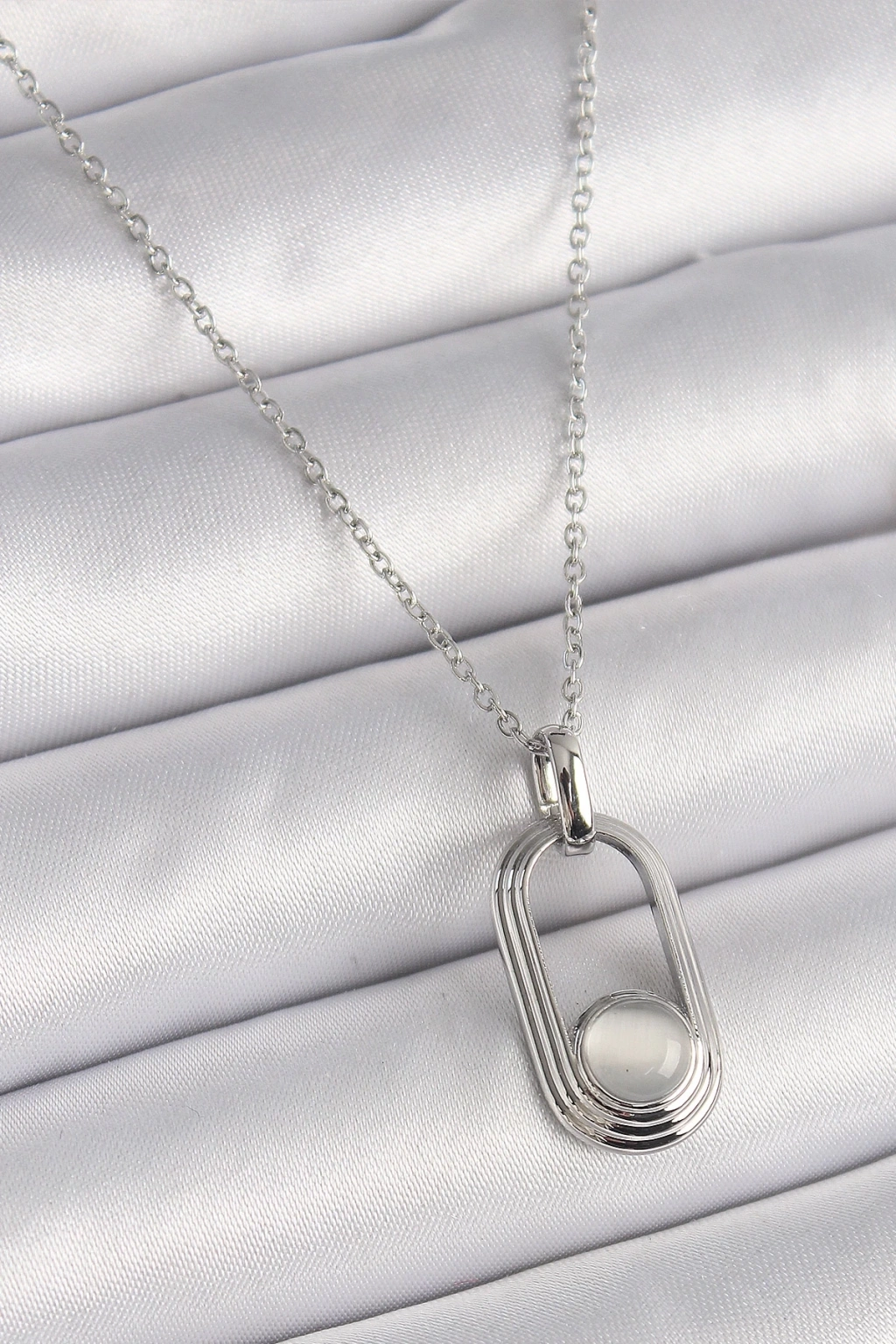 BFS 316L Çelik Gümüş Renk Zincir Beyaz Kedi Göz Model Kadın Kolye