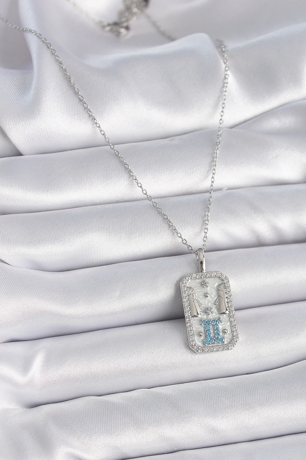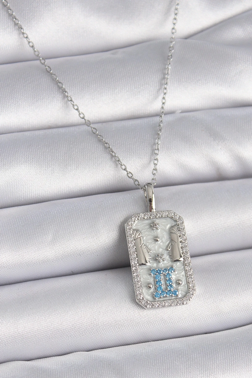 BFS 316L Çelik Gümüş Renk Zincir İkizler Burcu Zirkon Taşlı Kadın Kolye