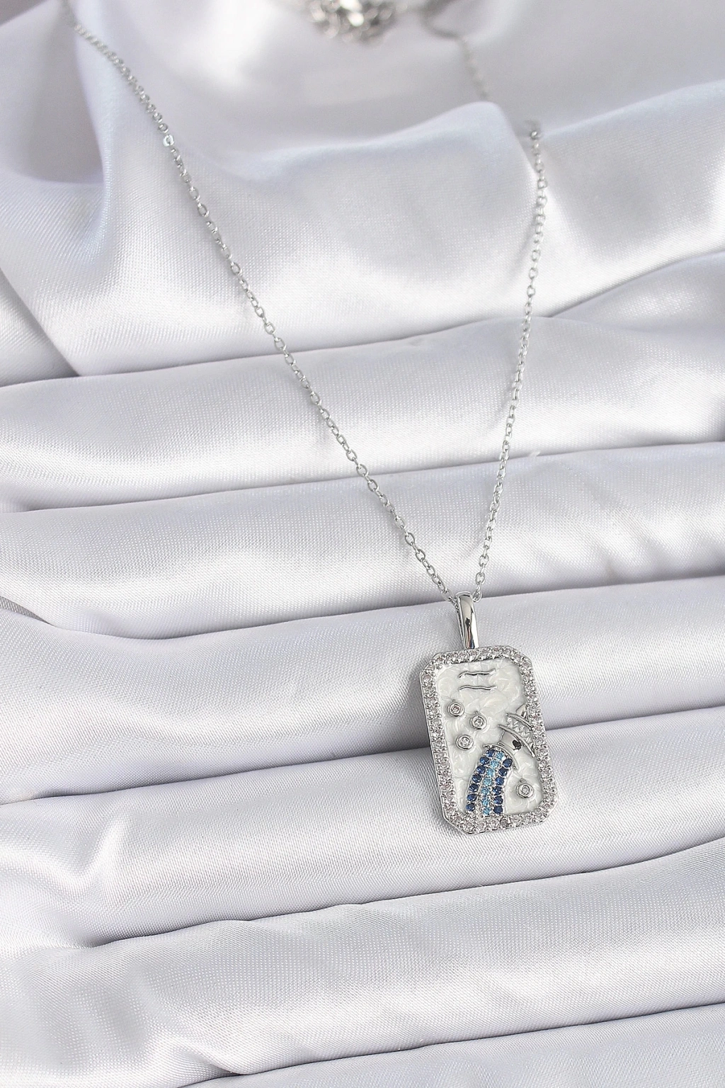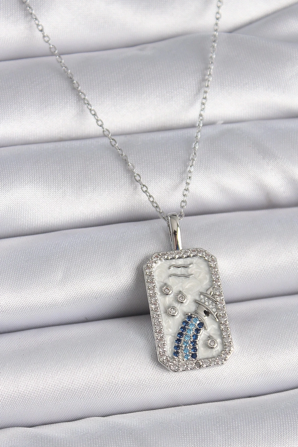 BFS 316L Çelik Gümüş Renk Zincir Kova Burcu Zirkon Taşlı Kadın Kolye