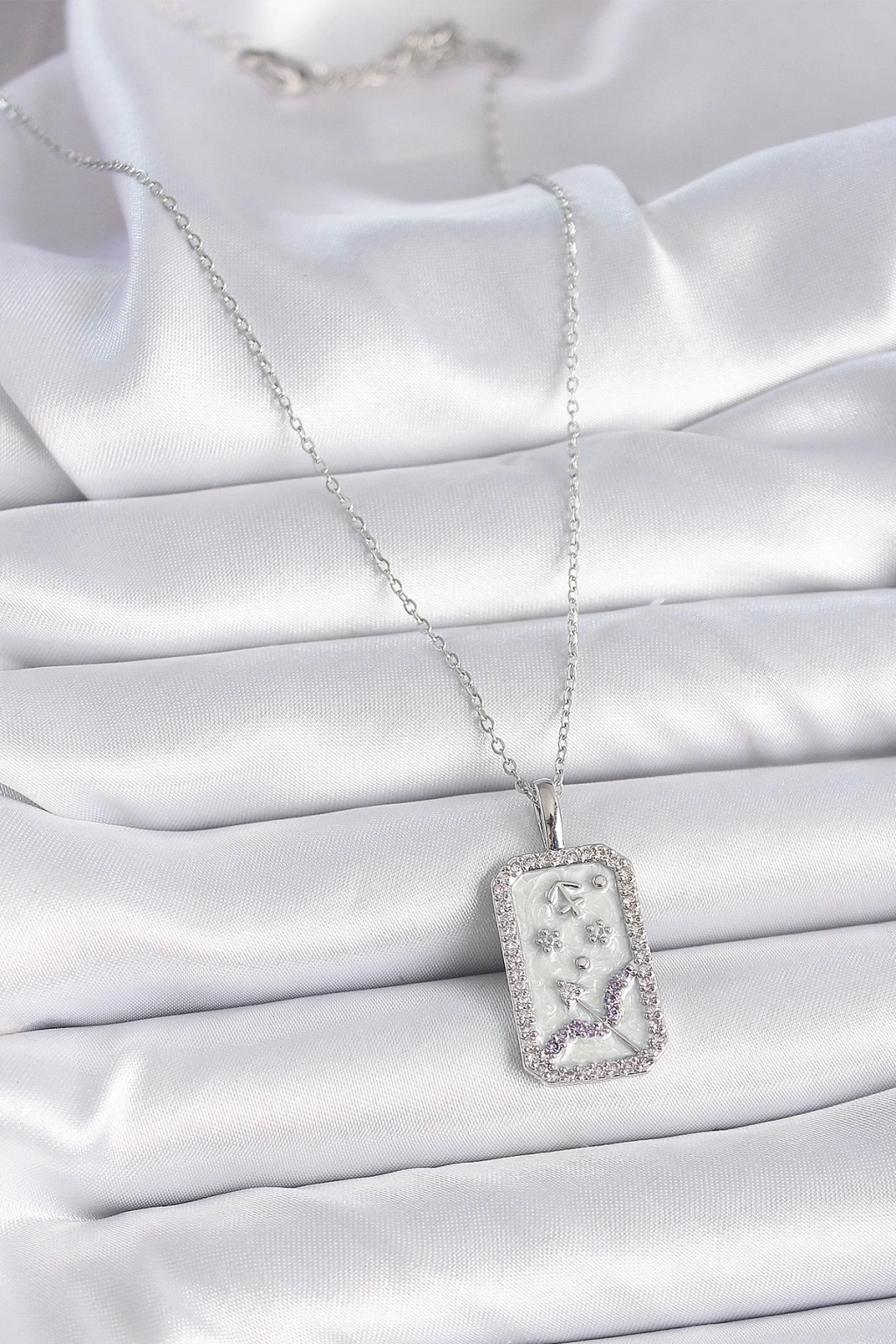 BFS 316L Çelik Gümüş Renk Zincir Yay Burcu Zirkon Taşlı Kadın Kolye