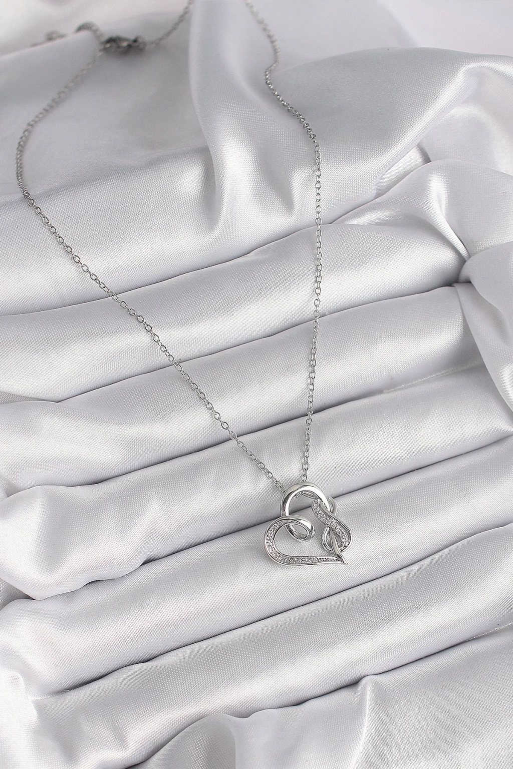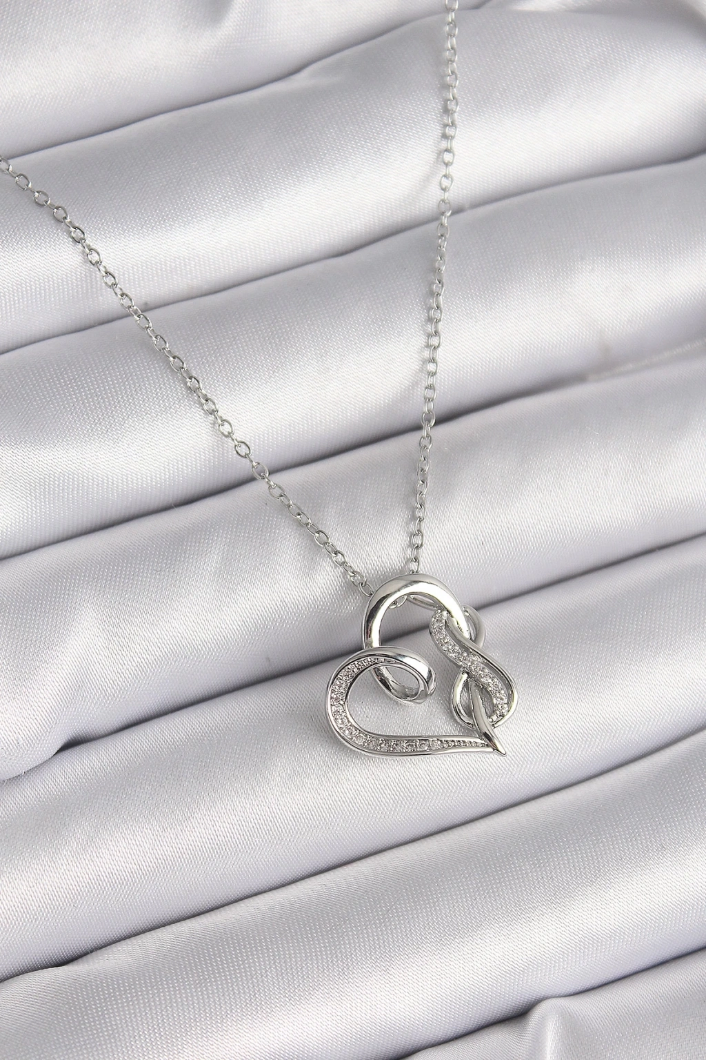 BFS 316L Çelik Gümüş Renk Zincir Zirkon Taş Detaylı Kalp Model Sonsuzluk Detay Kadın Kolye