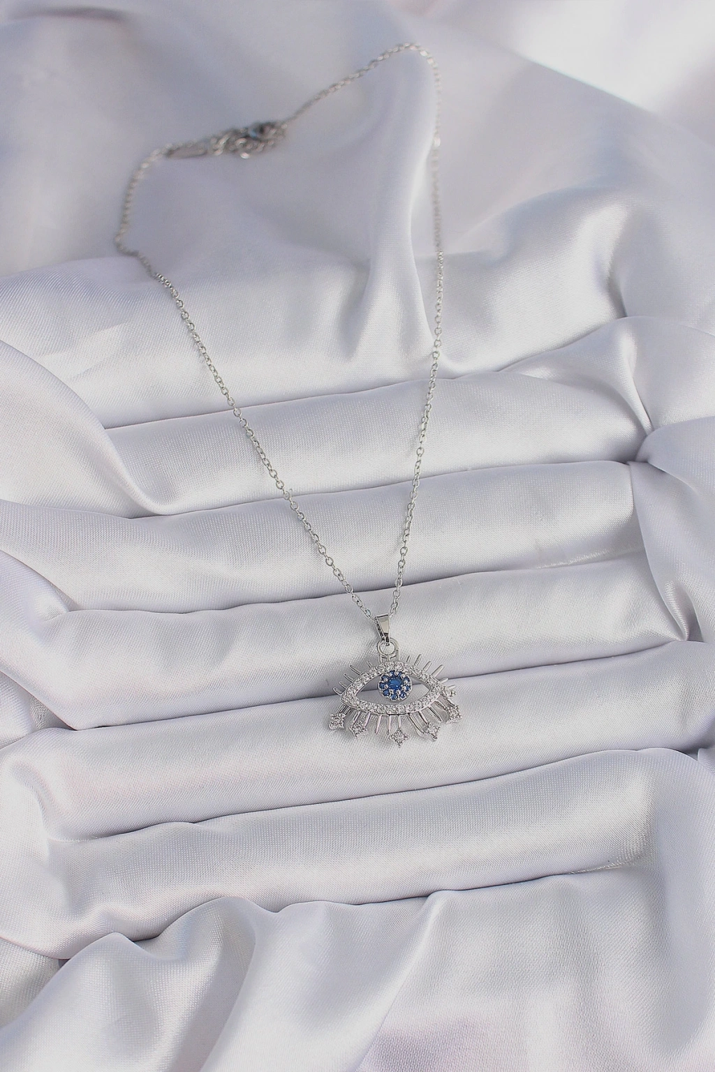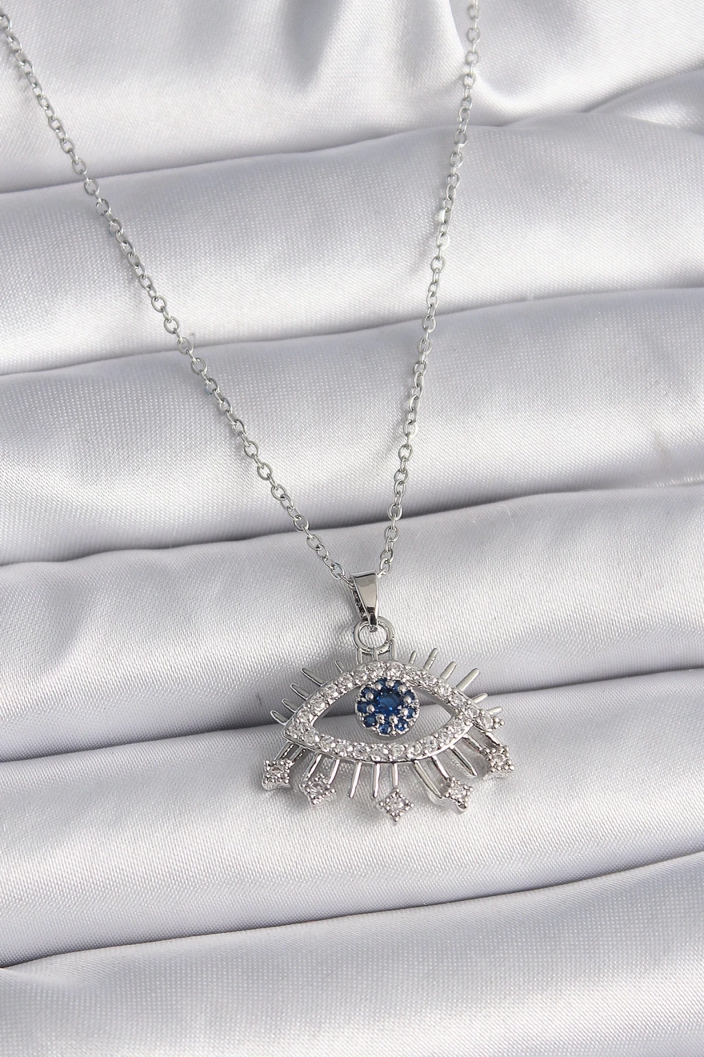 BFS 316L Çelik Gümüş Renk Zincir Zirkon Taşlı Göz Model Kadın Kolye