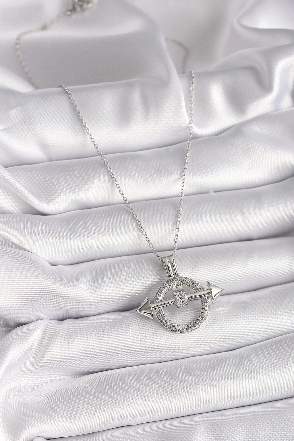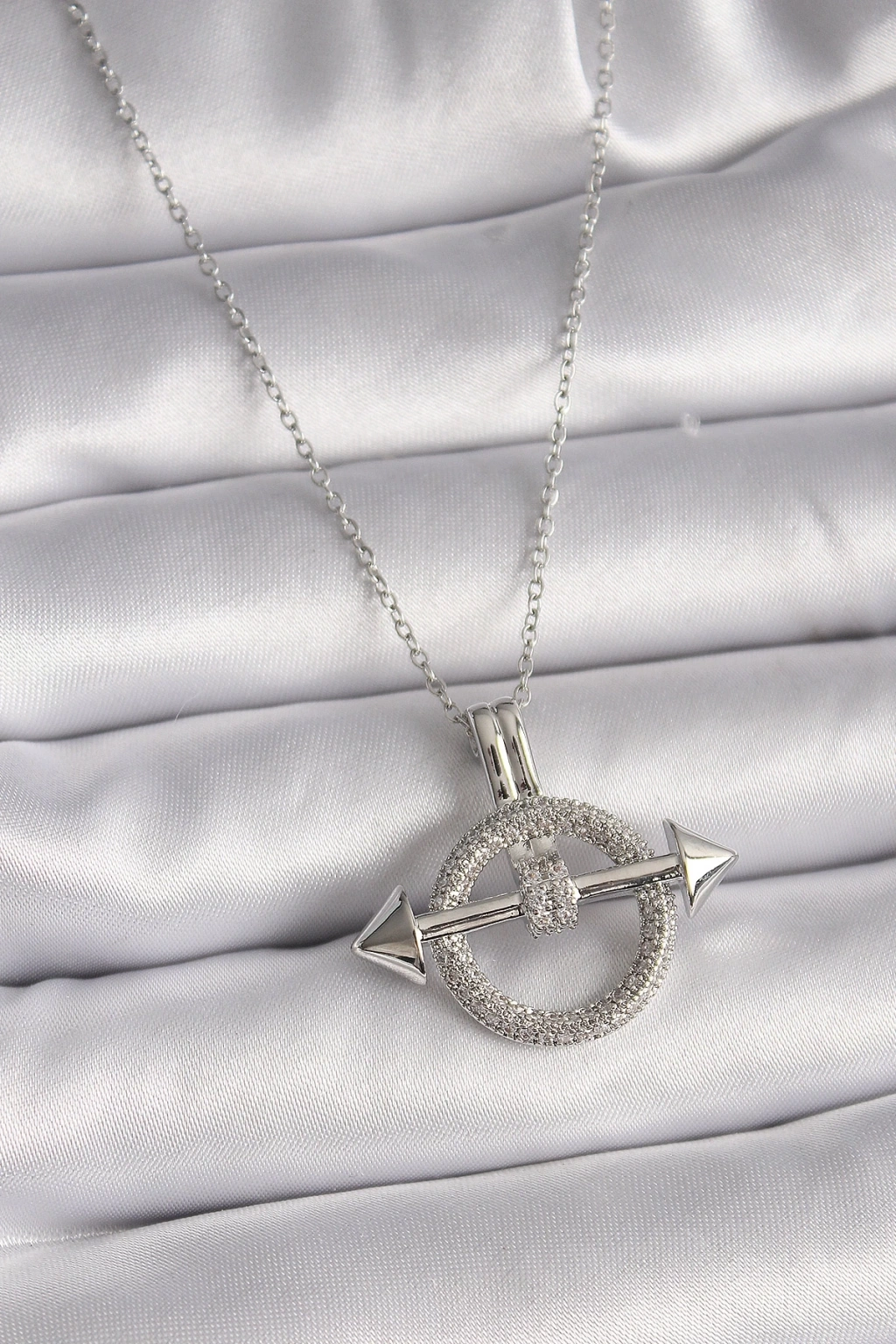 BFS 316L Çelik Gümüş Renk Zincir Zirkon Taşlı Halka Model Kadın Kolye