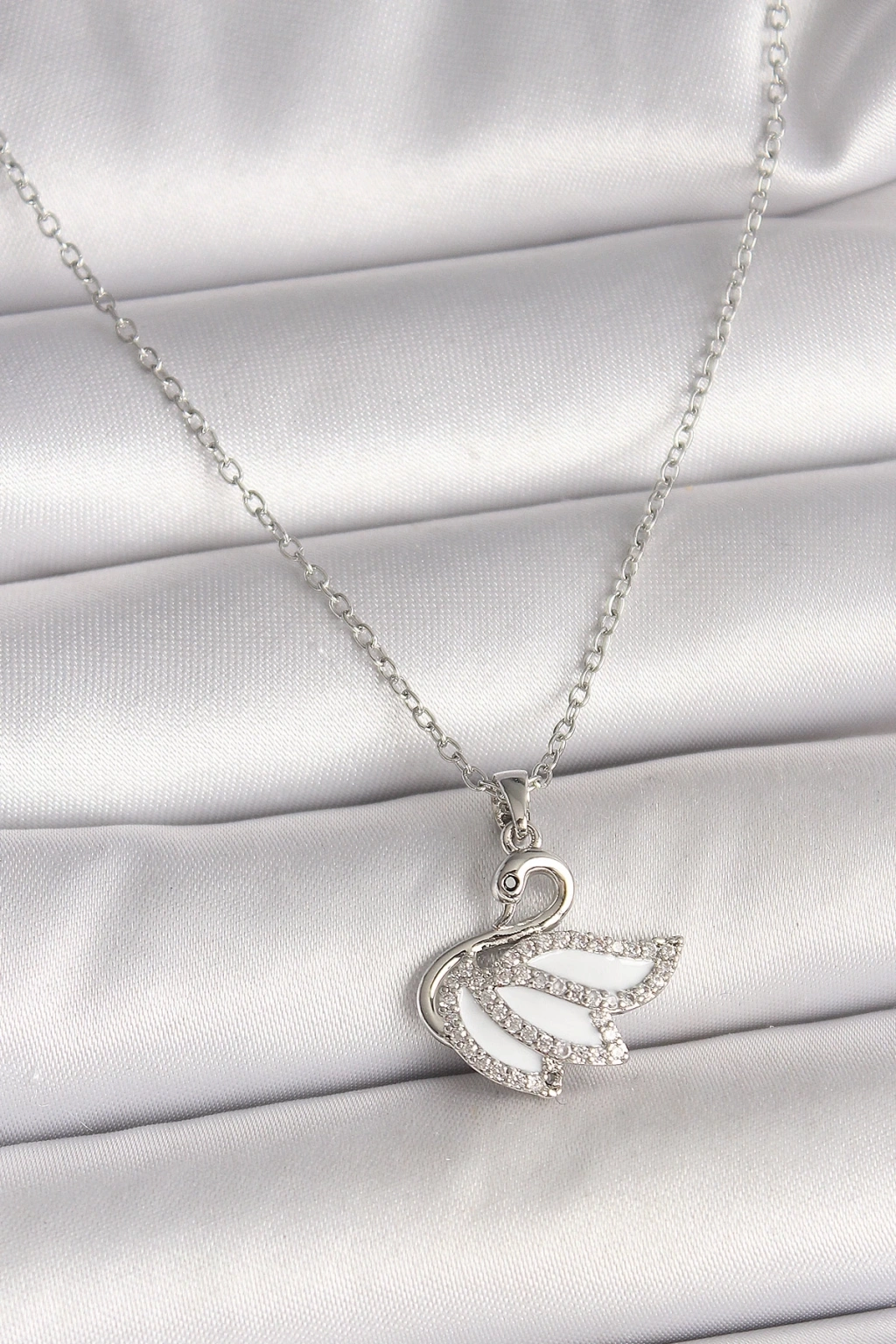 BFS 316L Çelik Gümüş Renk Zincir Zirkon Taşlı Kuğu Model Kadın Kolye