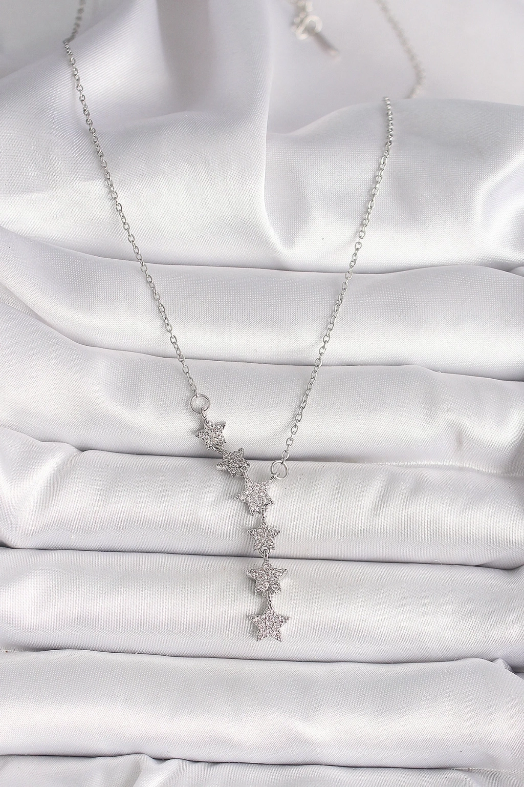 BFS 316L Çelik Gümüş Renk Zincir Zirkon Taşlı Yıldız Model Kadın Kolye