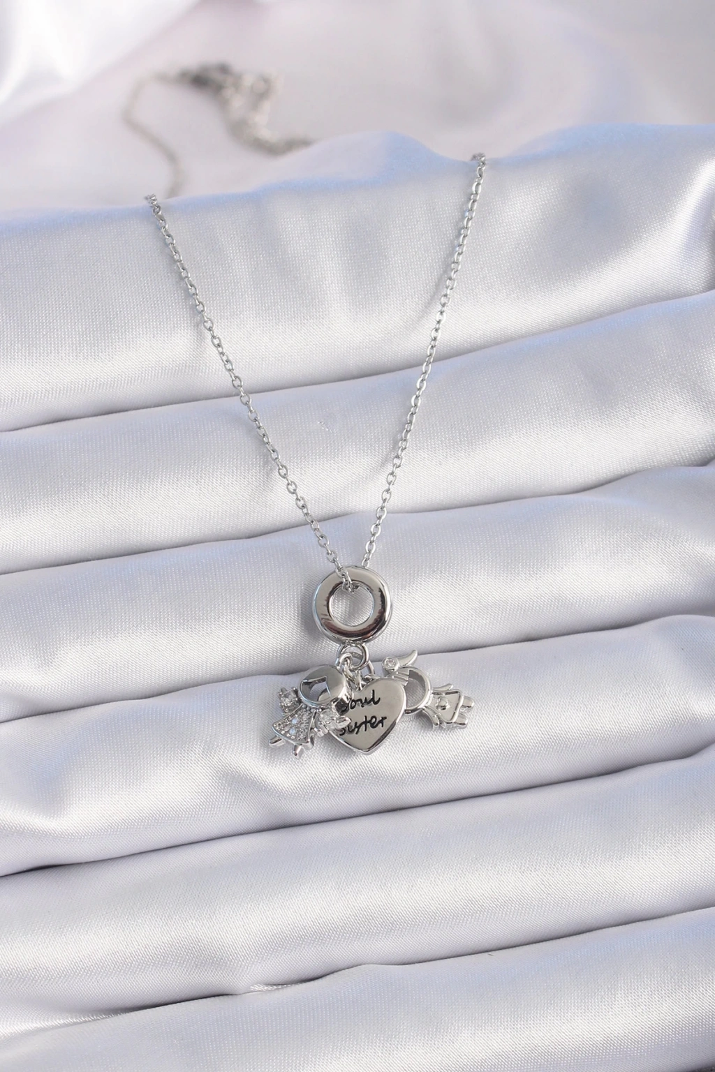 BFS 316L Çelik Gümüş Renk Zirkon Taş Detay Çocuk Figür Charm Model Kadın Kolye